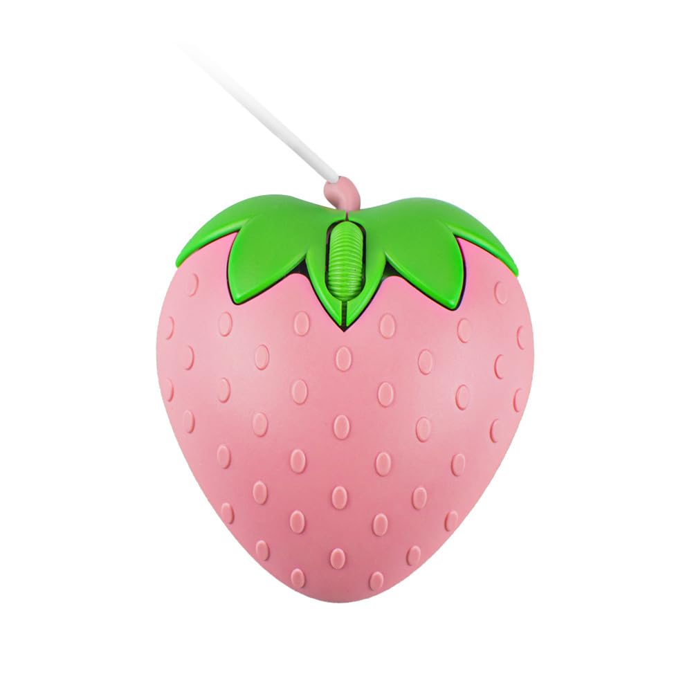 Проводная USB-мышь, маленькая, милая, в форме фруктов, клубники, мультяшная, USB-мини-оптическая мышь, портативная, для детей и женщин, совместимая с ПК/ноутбуком/компьютером (розовый)