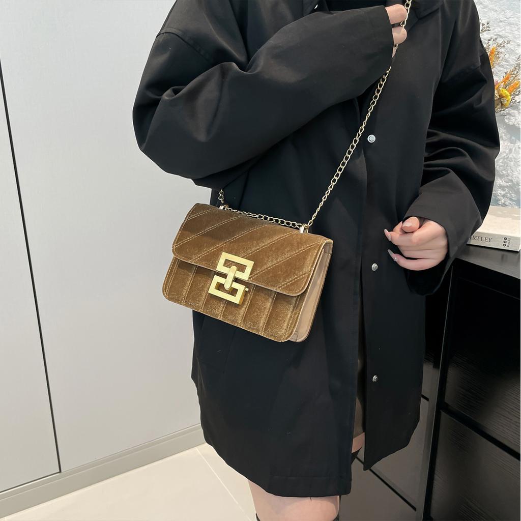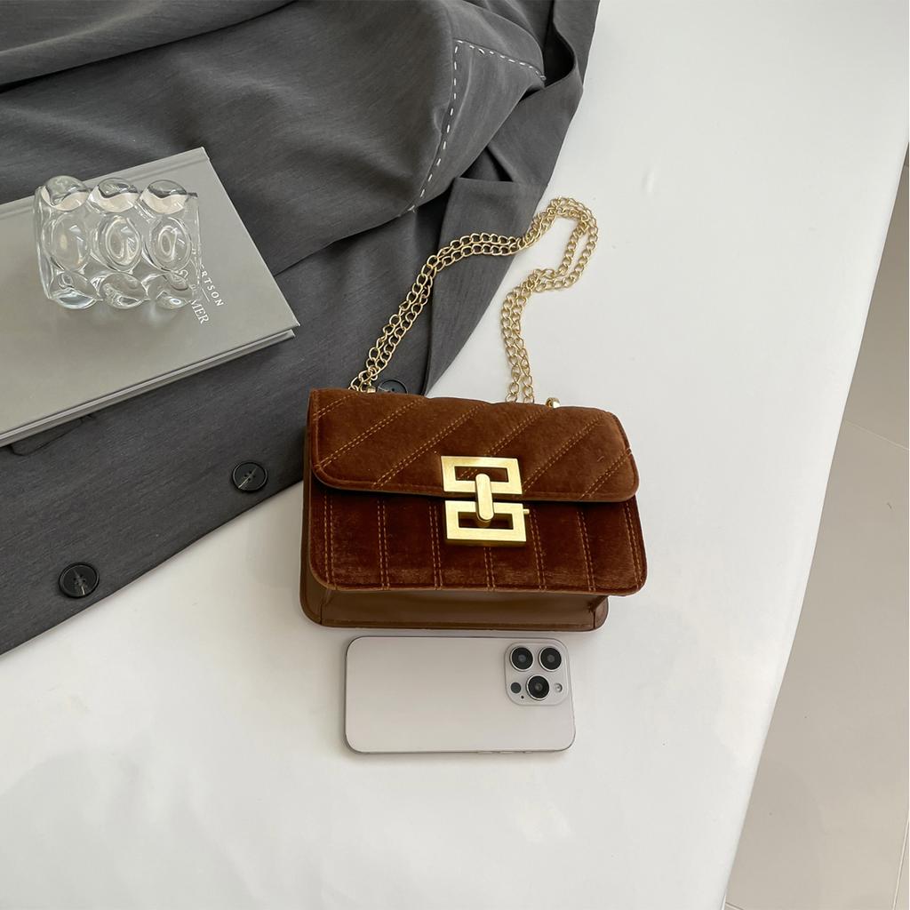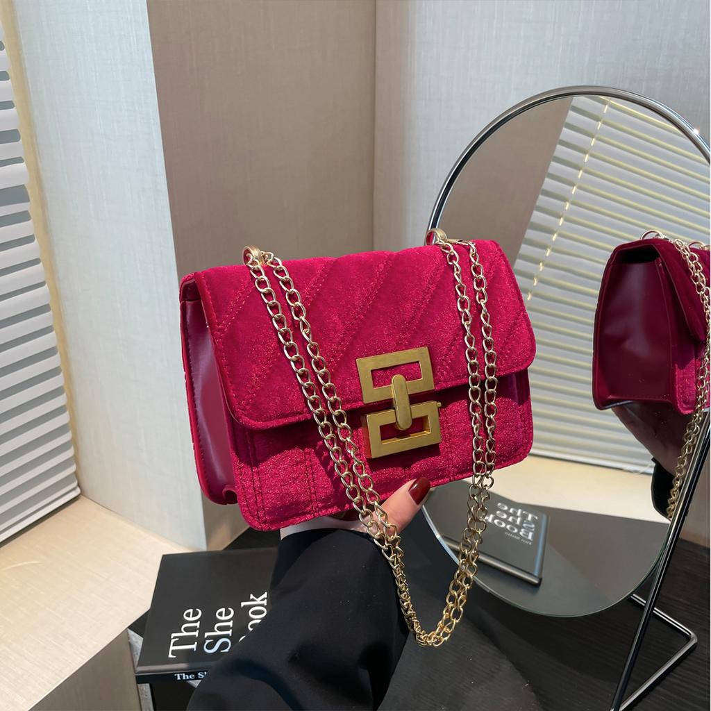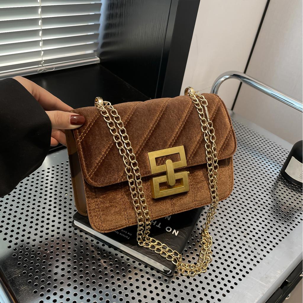 Винтажная сумка через плечо/через плечо с бархатным клапаном-застежкой-поворотом и цепочным ремешком. Идеально подходит для поездок на работу и повседневного использования.