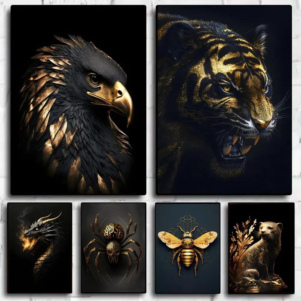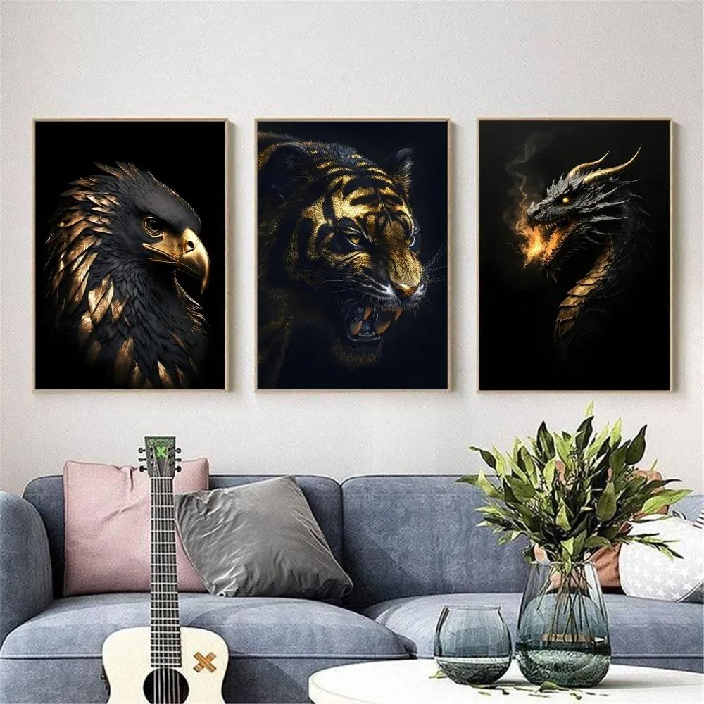 Черно-золотой орел лев постер искусство настенные картины холст дома гостиная спальня бар эстетическое украшение