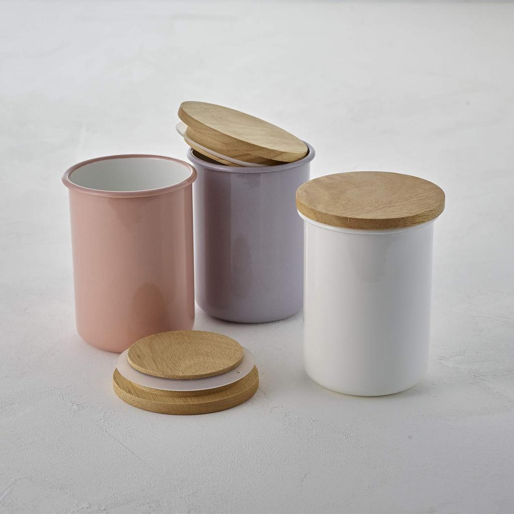 Банка Fuji с деревянной эмалированной крышкой, пепельно-розовая C-9CNL AP