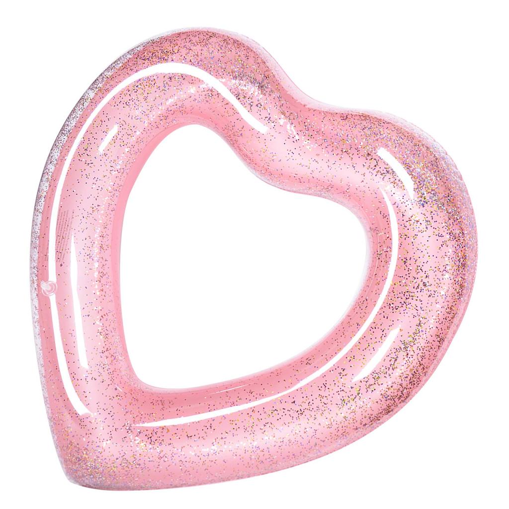Поплавок для взрослых и детей Ninonly Float Water Play Glitter Inflator Swimming Cute Summer Vacation Диаметр 90 см В форме сердца (розовый)