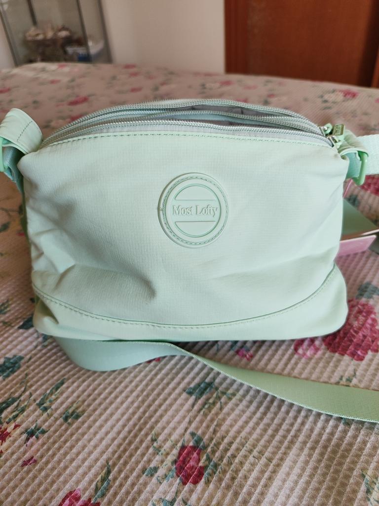 Замечательная сумочка нейлоновая, три отделения, внутри среднего отделения небольшой карман, и карман с обратной стороны сумочки. Сшита качественно, постороннего запаха нет. Очень лёгкая и аккуратная.