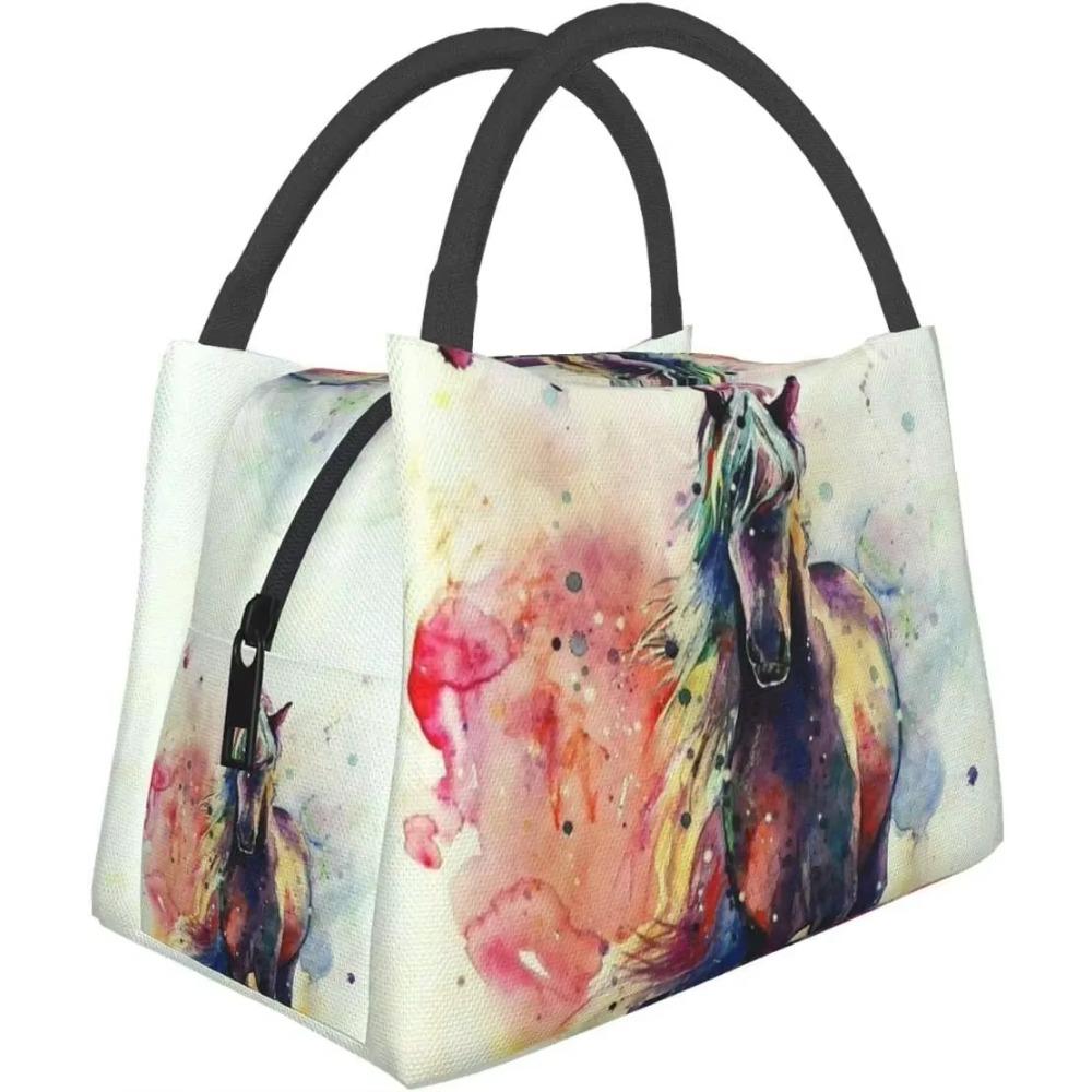 Сумка для ланча с акварельной лошадью, сумка-тоут для мужчин и женщин, ланч-бокс, многоразовый изолированный контейнер для ланча, работа, пикник или путешествие
