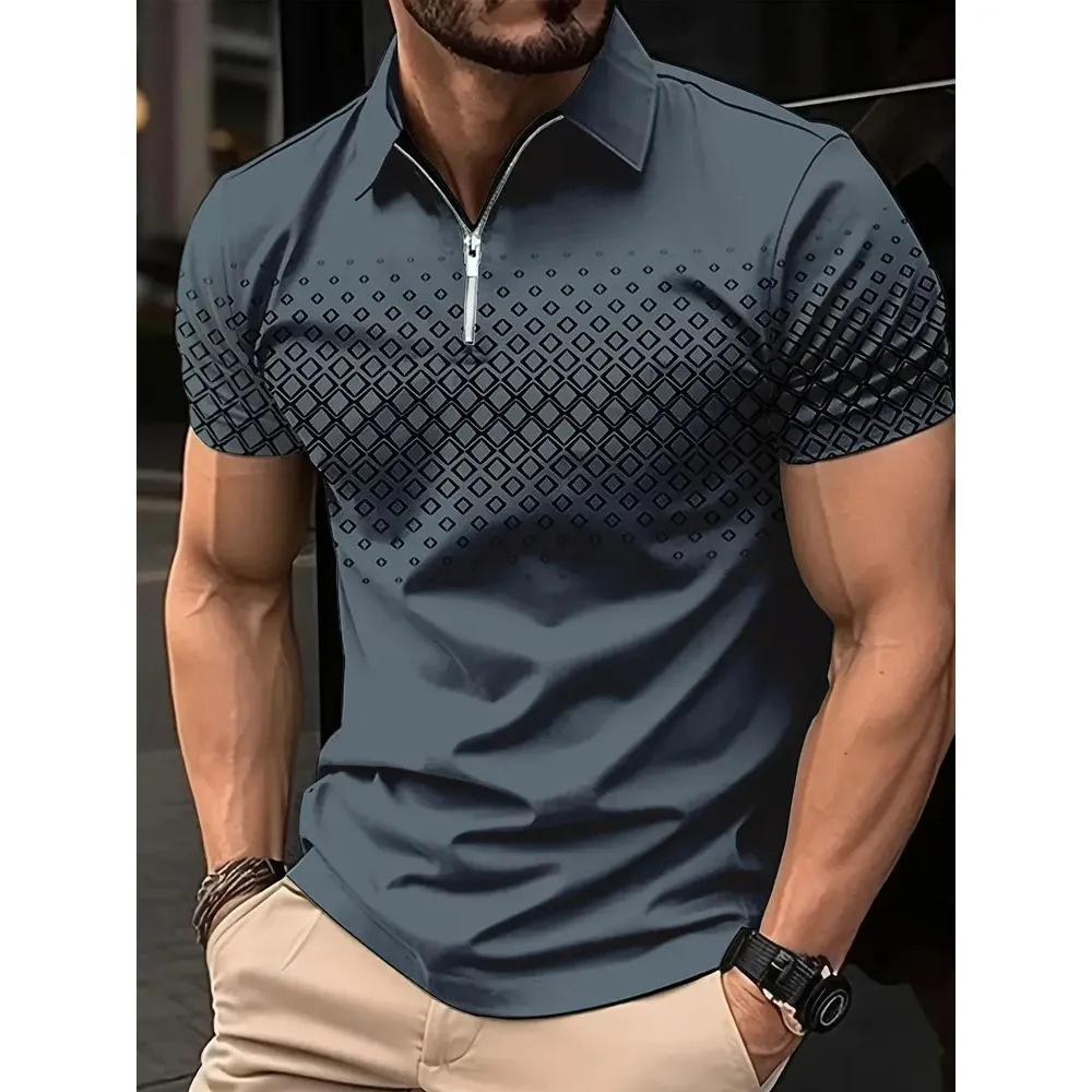 Рубашка для гольфа на молнии, поло, повседневная, с короткими рукавами, летняя, уличная, мужской стиль