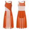 Детские шифоновые лирические танцевальные костюмы без рукавов для девочек, платье-купальник с цветными блоками, современные платья