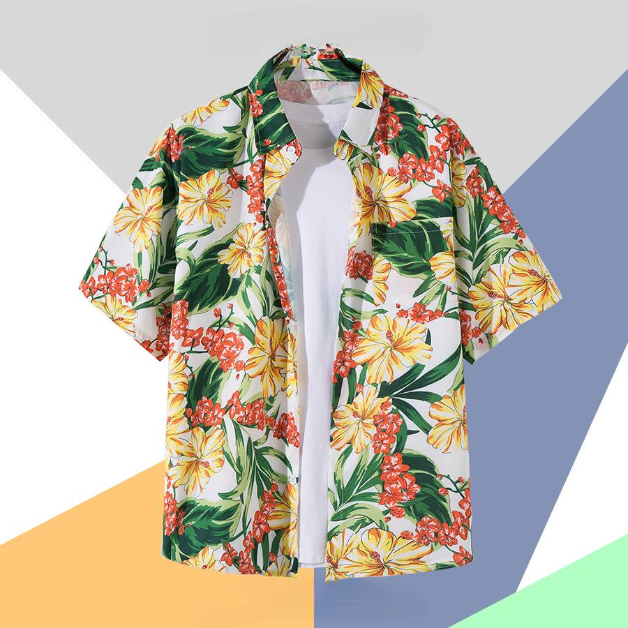 Цветочная рубашка Мужская летняя свободная повседневная рубашка с короткими рукавами