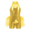Костюм для латинских танцев для девочек с блестками, купальник, детский комбинезон без рукавов, блестящий джазовый костюм, костюмы с перьями