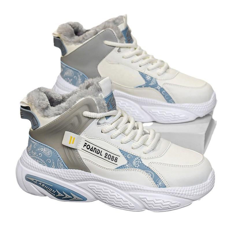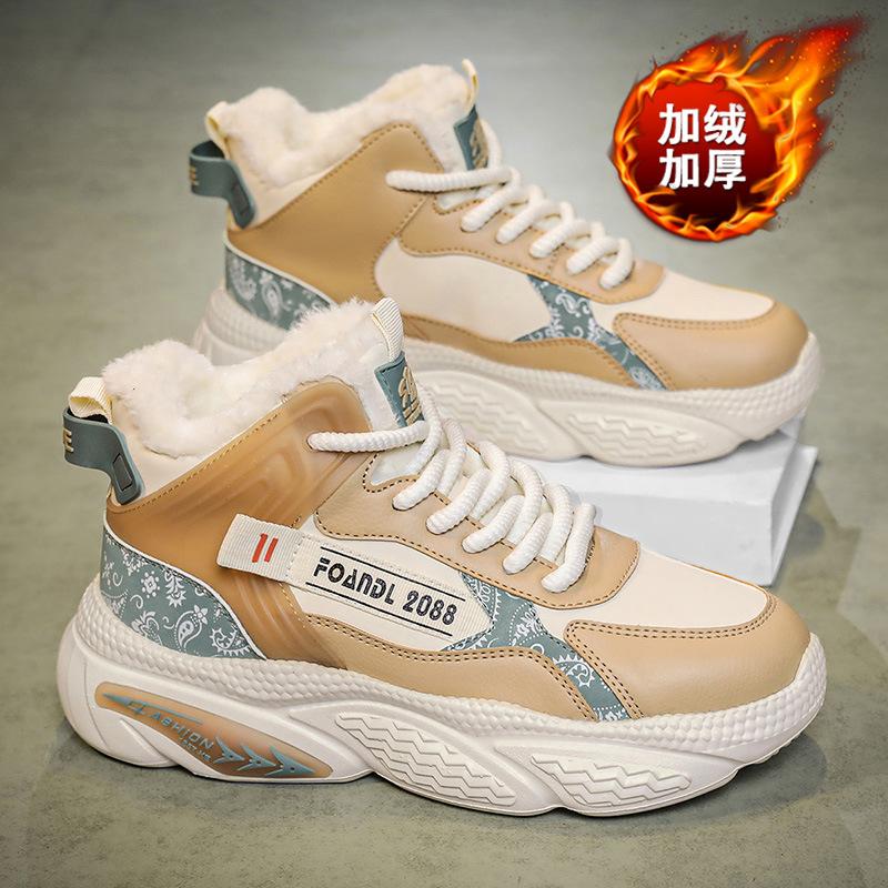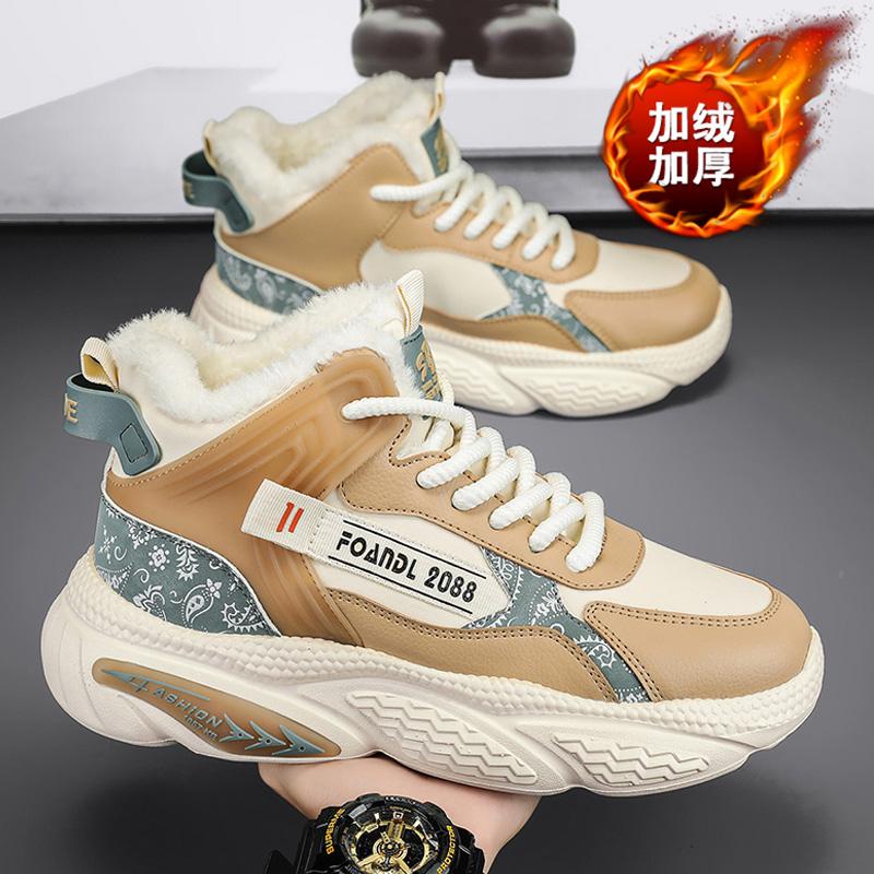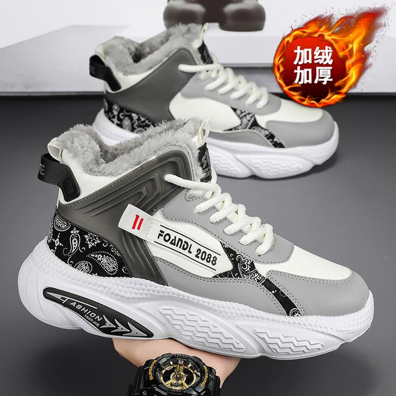 Высокие мужские туфли зима 2024 новые флисовые утолщенные теплые хлопковые туфли мужские спортивные туфли Daddy Tide