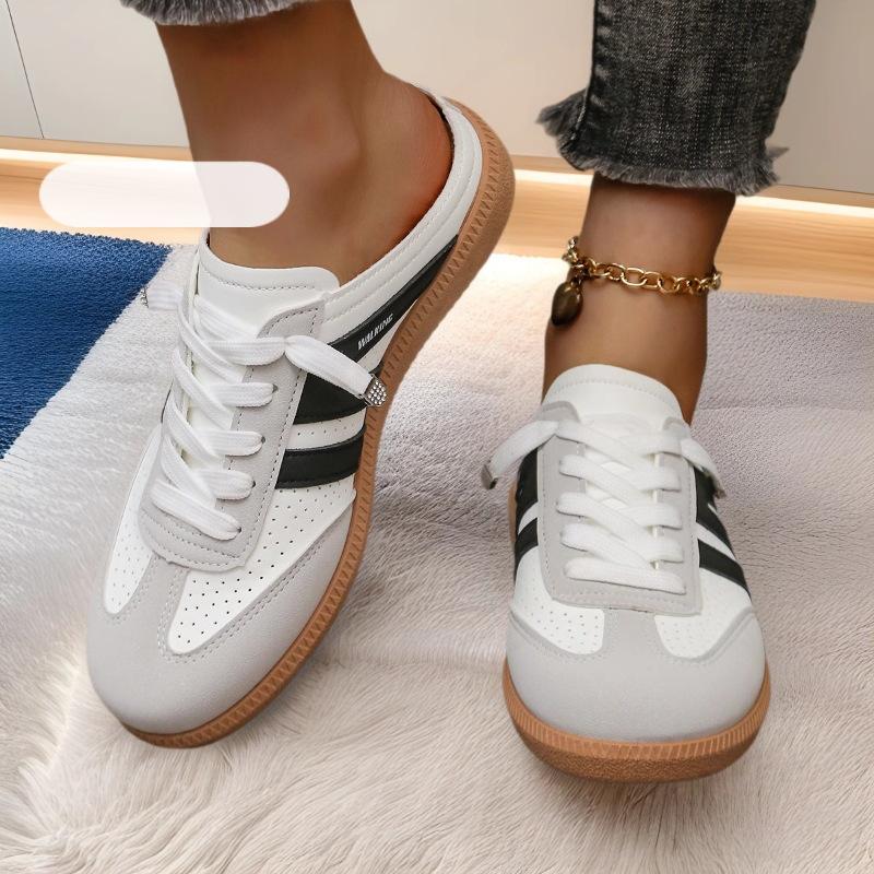 Большие размеры модных женских кроссовок Baotou half-drag 2025 года, весна и осень, новые легкие, простые и универсальные модные повседневные женские туфли