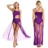 Платье для лирического танца, асимметричное сетчатое платье макси, балетное трико, одежда для бальных танцев для женщин