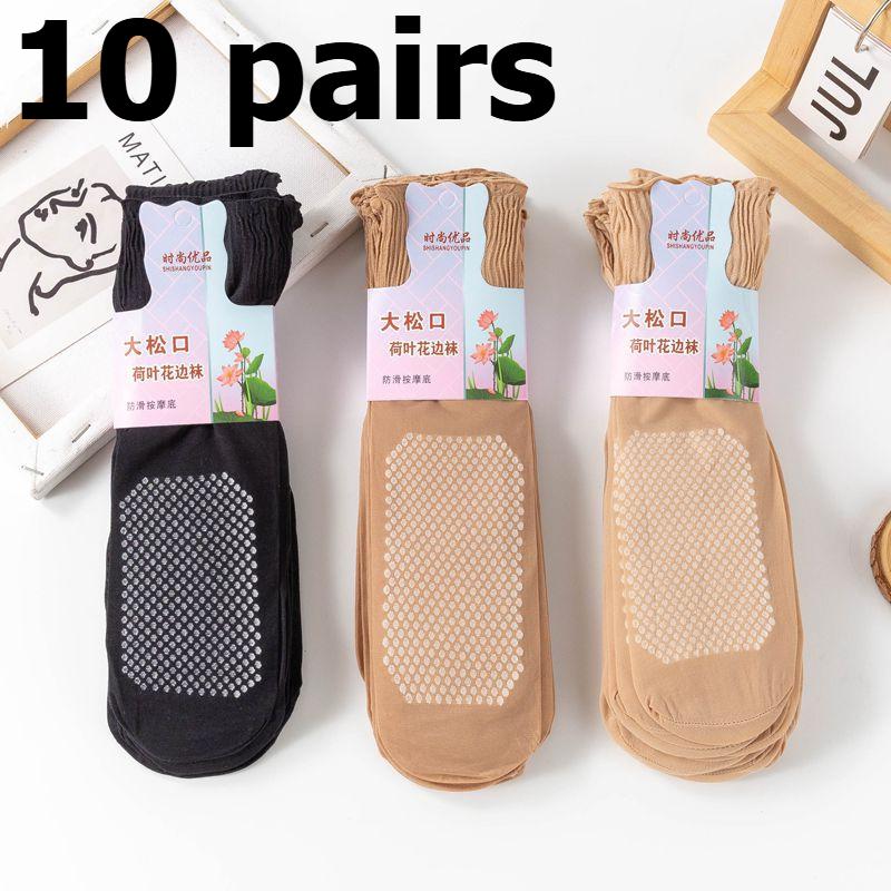 10 пар дешевых оптовых свободных чулок с оборками, женские носки средней длины, тонкие чулки для весны и лета, женские дышащие и нескользящие носки со стразами