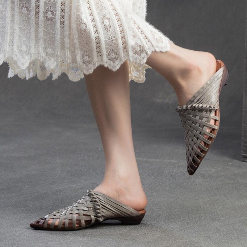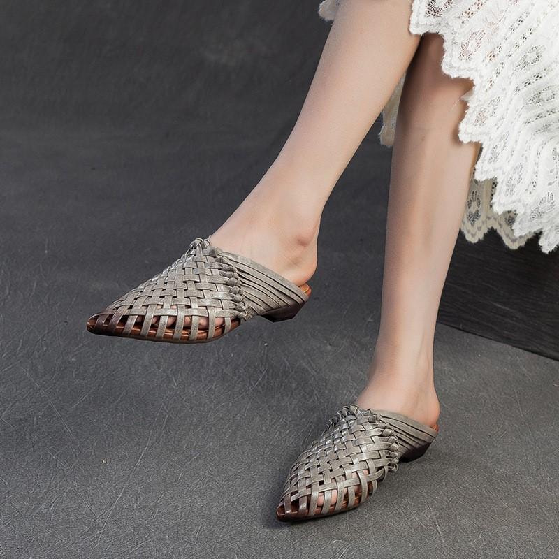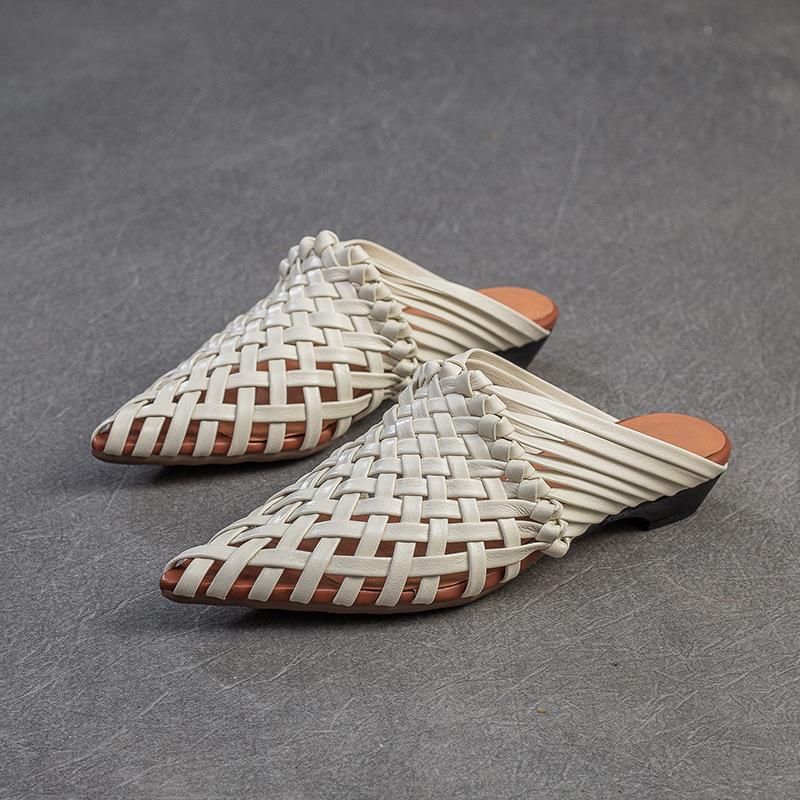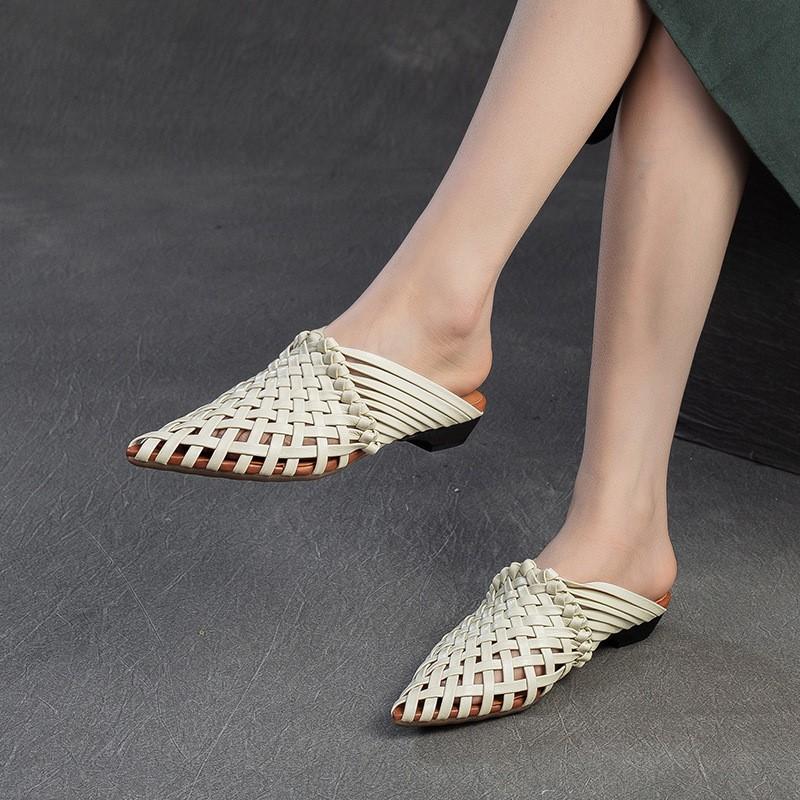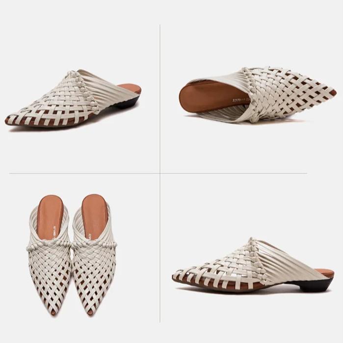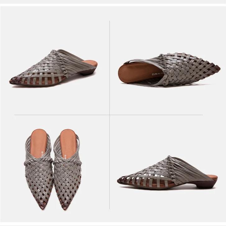 Johnature Тапочки ручной работы с острым носком и низким каблуком, дышащая модная женская обувь из натуральной кожи