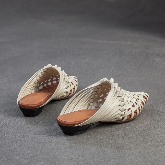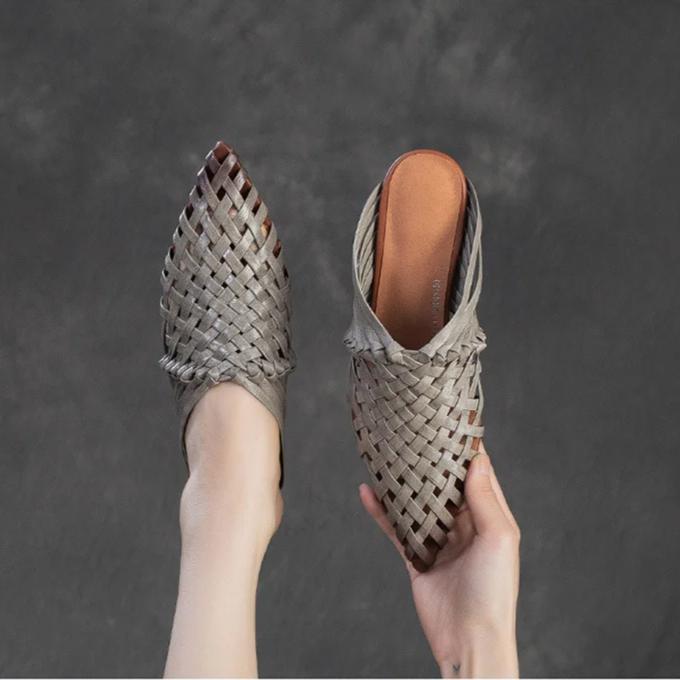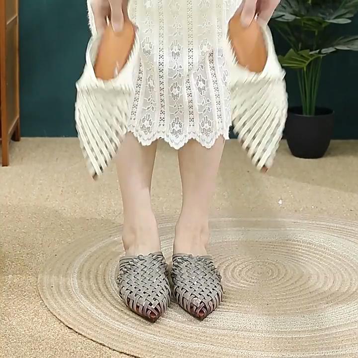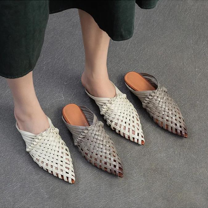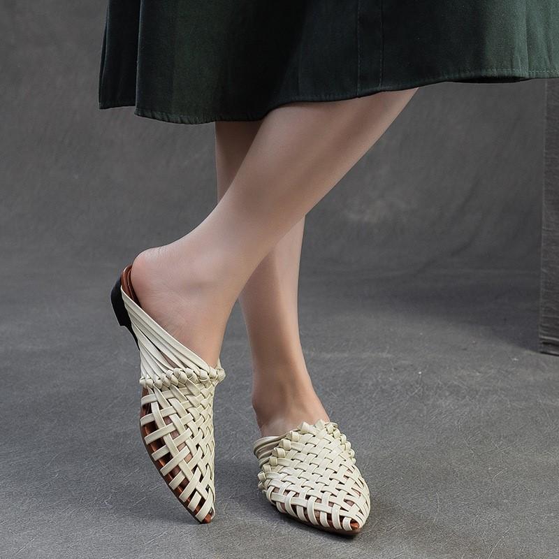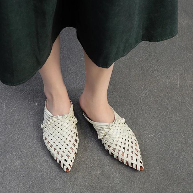 Johnature Тапочки ручной работы с острым носком и низким каблуком, дышащая модная женская обувь из натуральной кожи