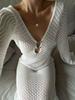 Trendix вязаное крючком платье-накидка для женщин белое полое длинное рукав макси платья для отпуска V-образный вырез спинка пляжное платье Femme — купить товар онлайн с бесплатной доставкой по всему миру!