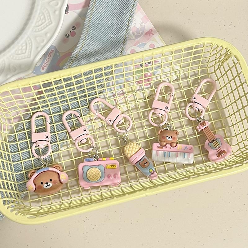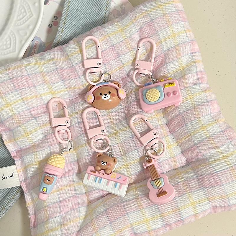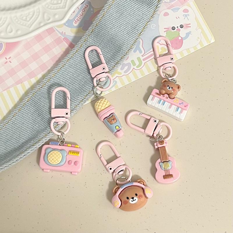 Милый розовый музыкальный брелок в виде медведя для женщин и девочек, шнурок с защитой от потери, изысканный креативный брелок для ключей, украшение на сумку, идеальный подарок