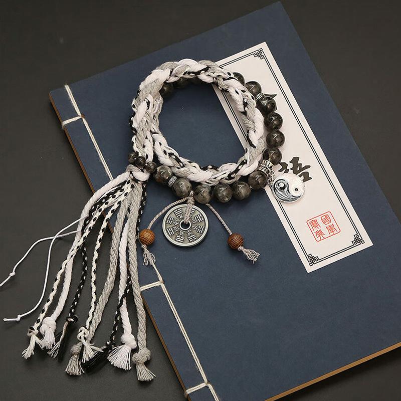 Плетеные браслеты ручной работы для женщин и мужчин, китайский талисман мира Инь-Ян, двухслойный браслет из бусин, регулируемые украшения