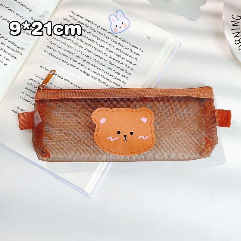 Милый мультяшный пенал с медведем, прозрачная сетчатая сумка для ручек, вместительный чехол для хранения канцелярских принадлежностей, офисные школьные принадлежности, подарки