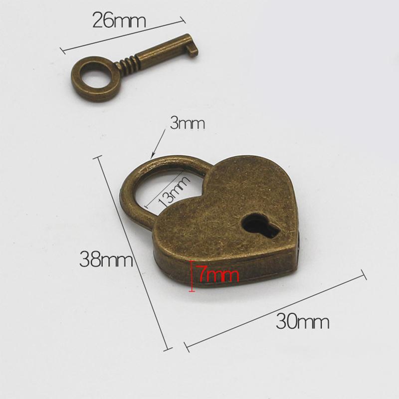 Антикварный стиль Сердце Форма Навесной замок Винтажный замок Романтический милый дневник Навесные замки с ключом Замок с ключом для шкатулки для драгоценностей чемодана