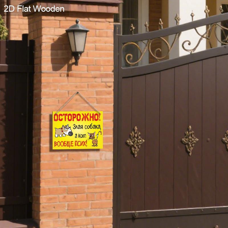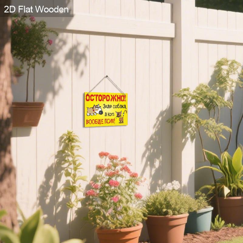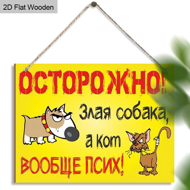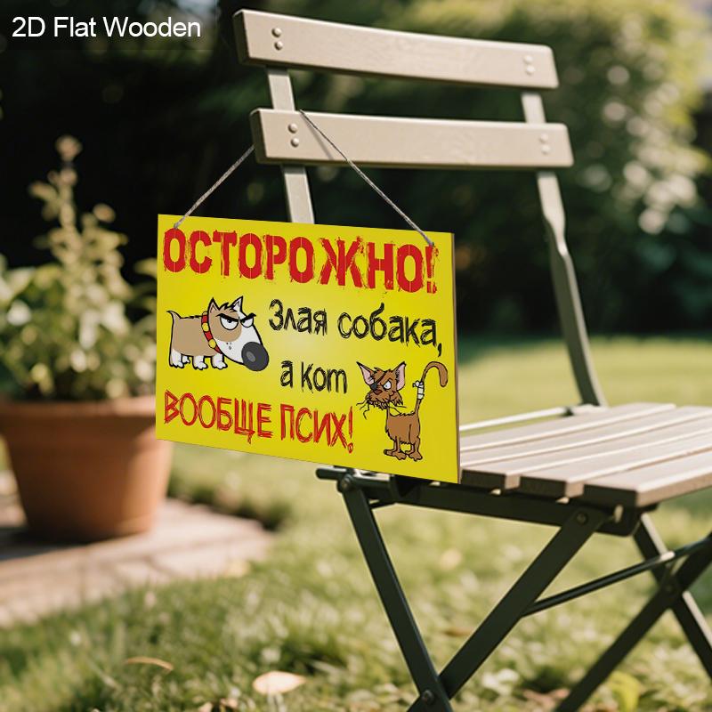 Яркий, забавный предупреждающий знак в русском стиле с собакой и кошкой! Идеально подходит для декора дома, магазина или сада — выделяется и привлекает внимание