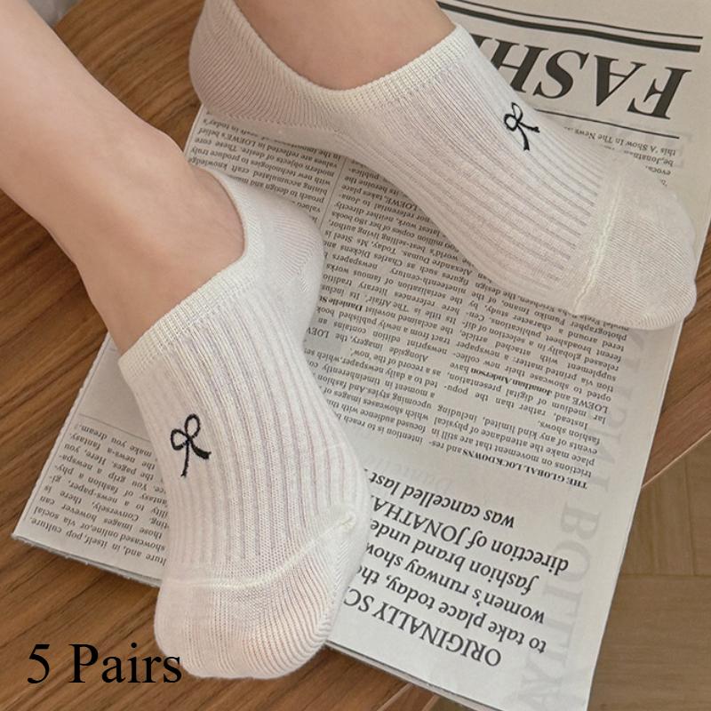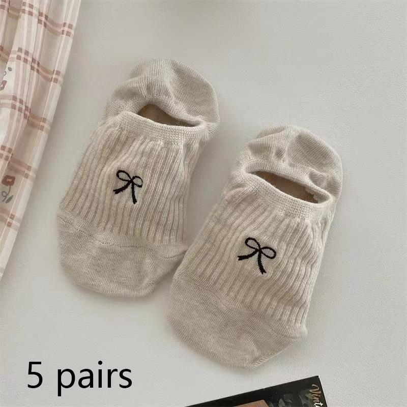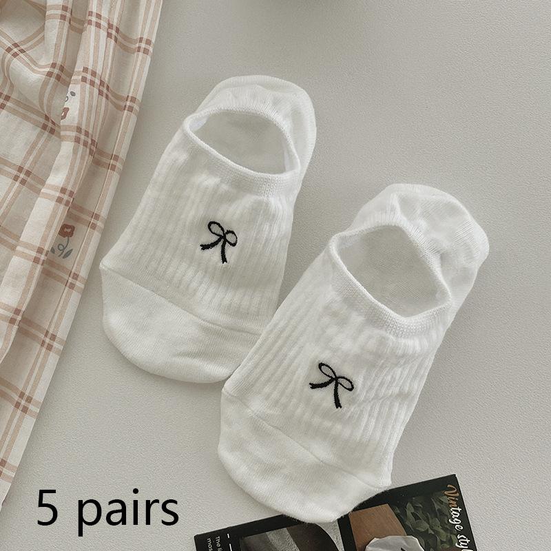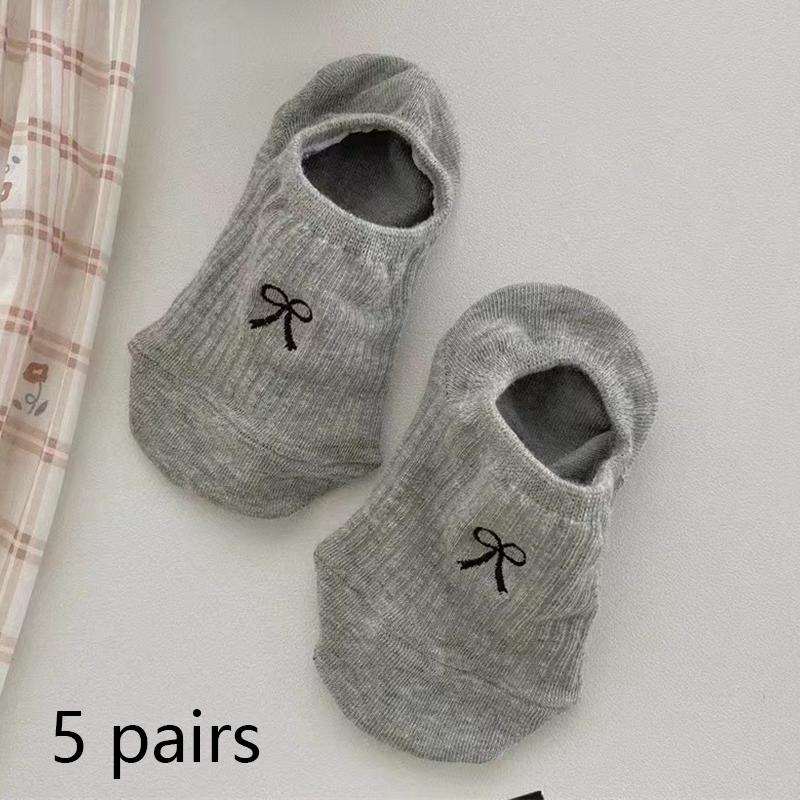 5/10 пар Женские модные невидимые носки Милый бантик Сетка Носки-невидимки Женский дизайн Нескользящие Дышащие Носки с низким вырезом Тапочки