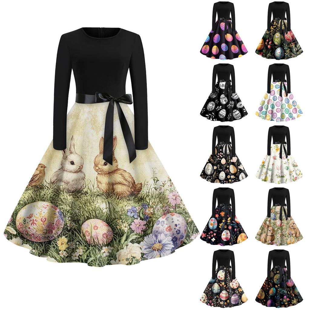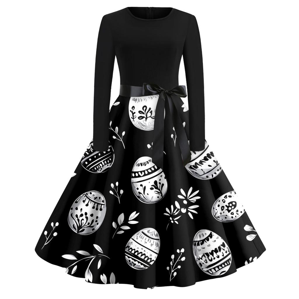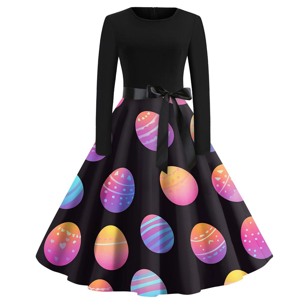 Женские платья модные повседневные облегающие платья с круглым вырезом и принтом на Пасху с длинным рукавом