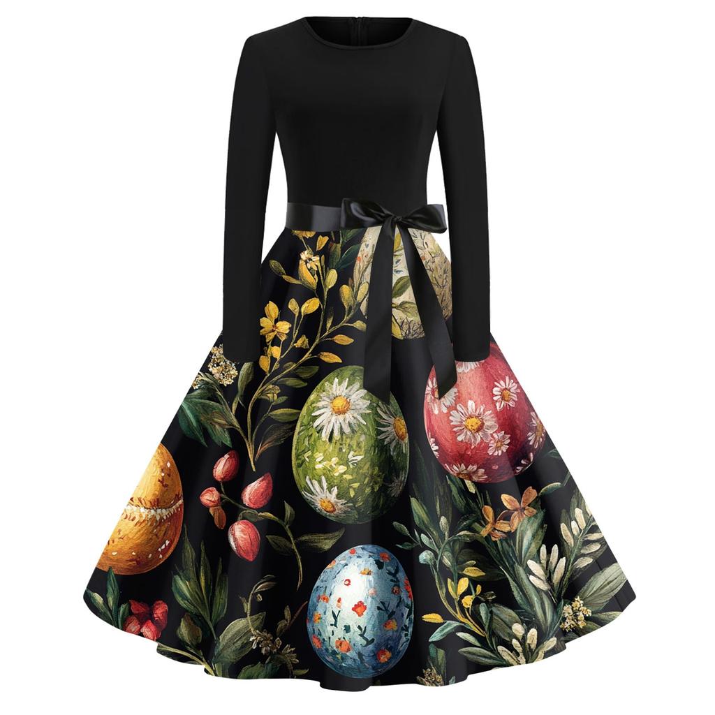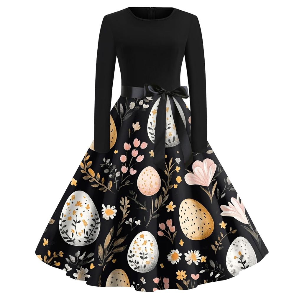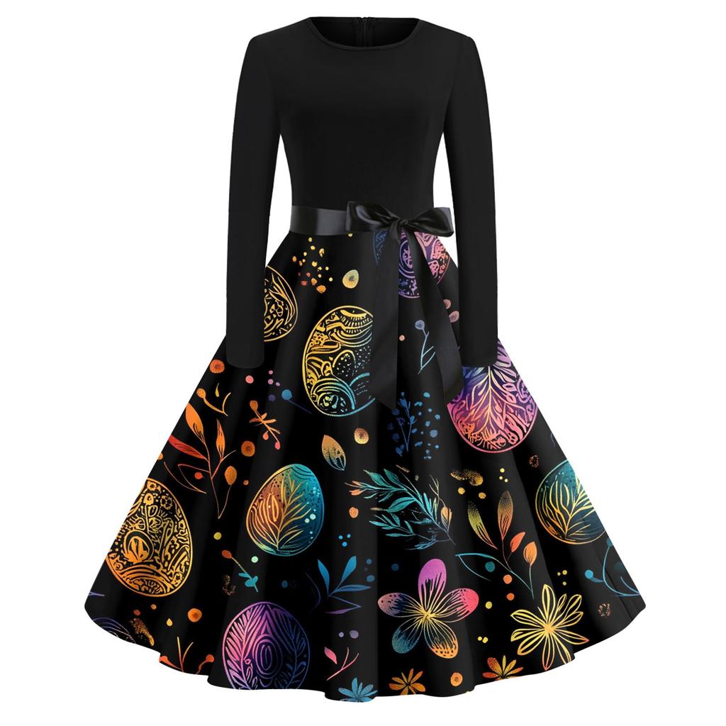 Женские платья модные повседневные облегающие платья с круглым вырезом и принтом на Пасху с длинным рукавом
