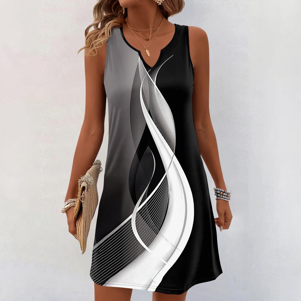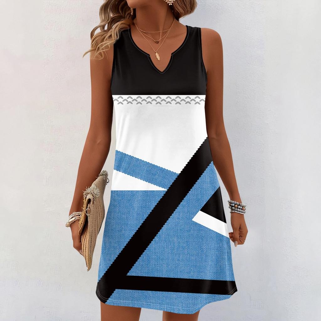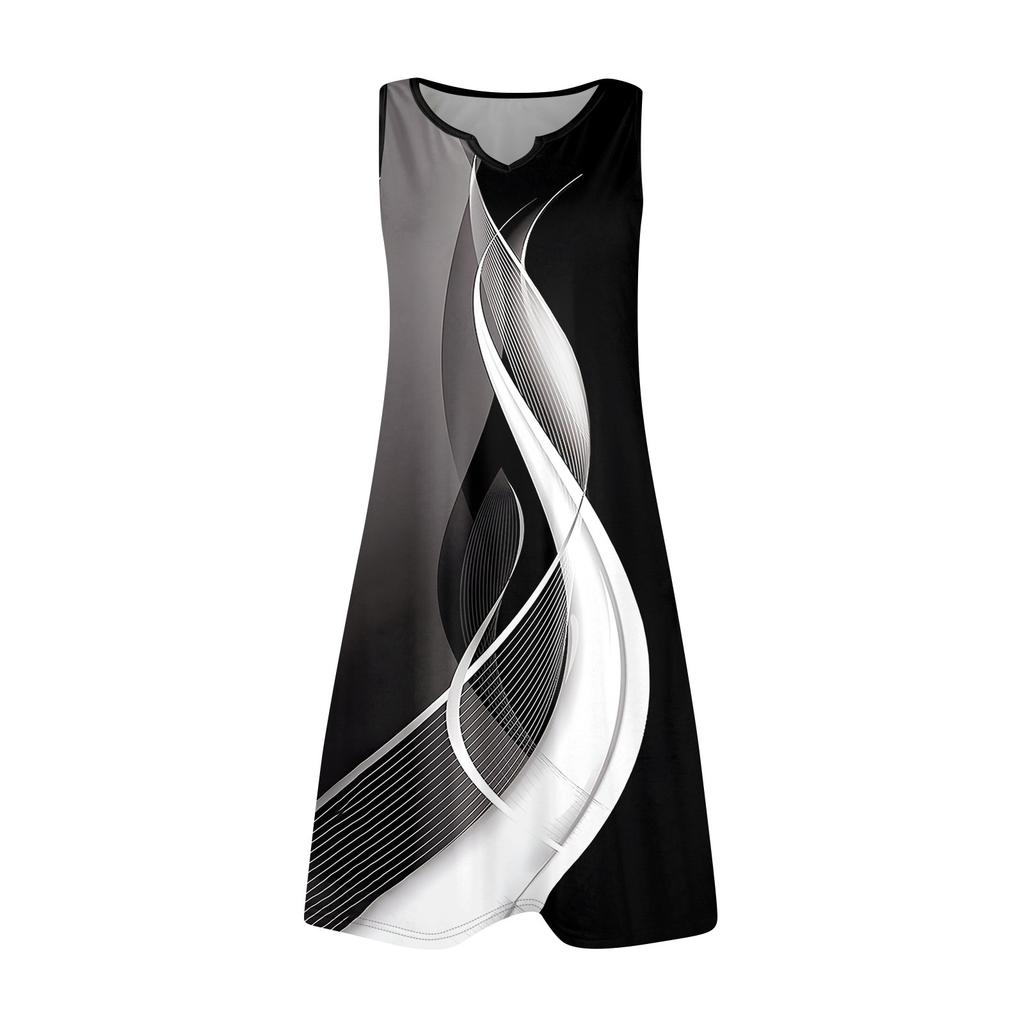 Женские летние платья с V-образным вырезом и принтом без рукавов Сарафан Повседневное платье