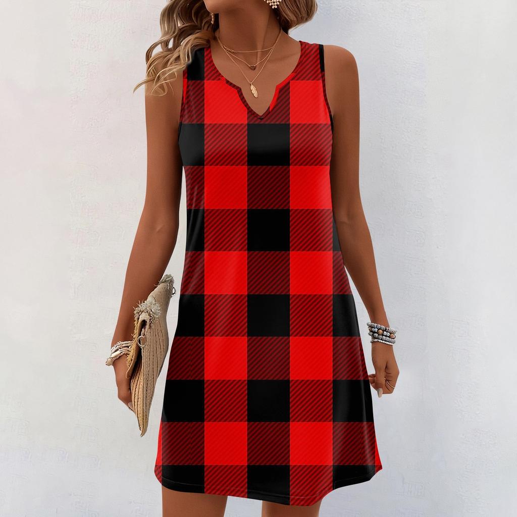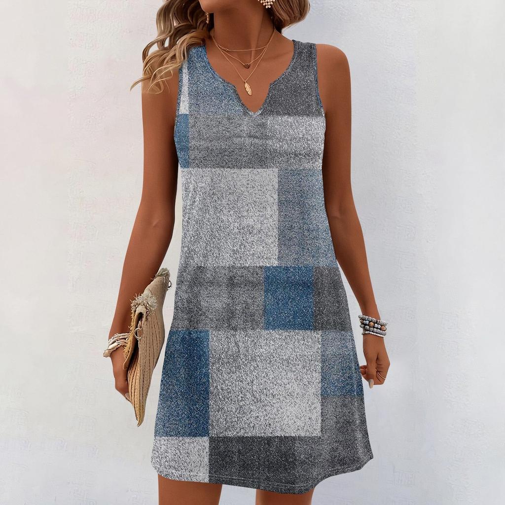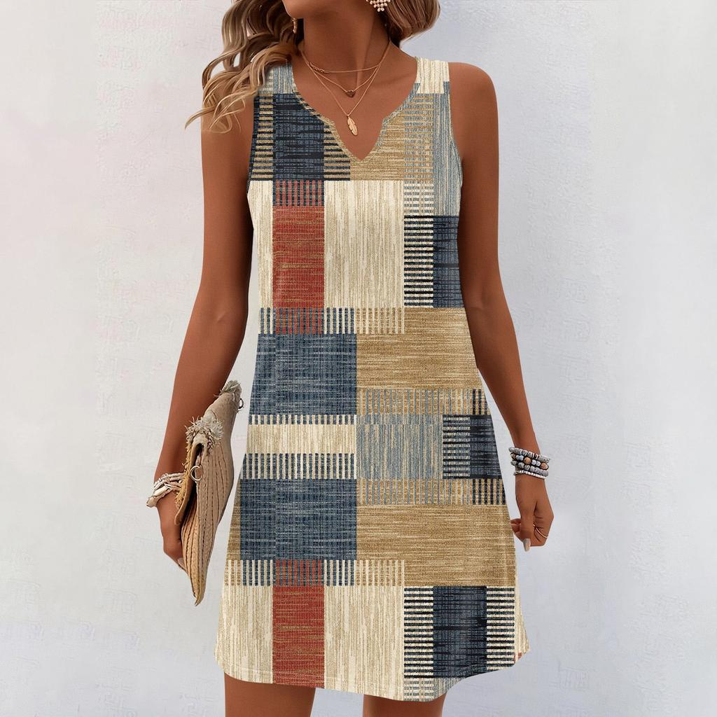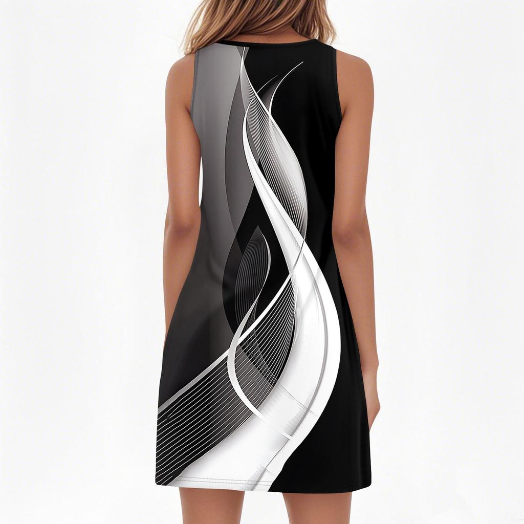Женские летние платья с V-образным вырезом и принтом без рукавов Сарафан Повседневное платье