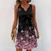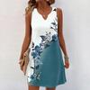Женские летние платья с V-образным вырезом и принтом без рукавов Сарафан Повседневное платье