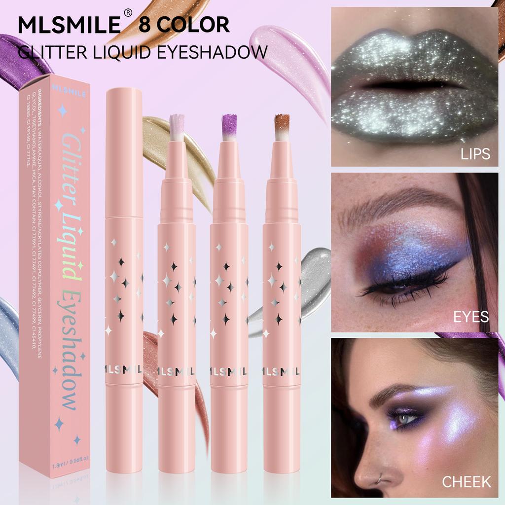 MLSMILE 8-цветная перламутровая кисть для жидких теней для век с мягкой щетиной. Бриллиантовые глянцевые жидкие тени для век, вращающиеся, многофункциональное использование.