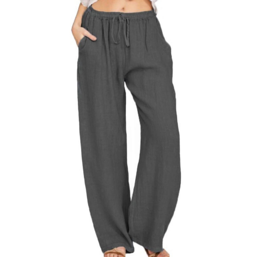 Летние женские однотонные льняные прямые повседневные брюки с несколькими карманами, большие размеры, дышащие, удобные, свободные брюки на шнурке