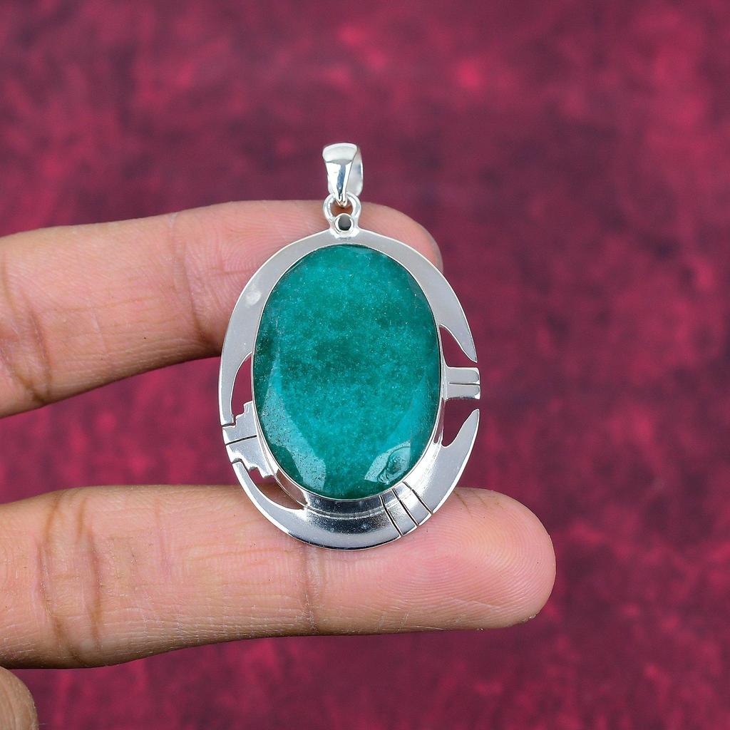 Подвеска с изумрудом, 925 пробы серебряная подвеска с драгоценными камнями, подвеска ручной работы, изумительное украшение, подарок для нее