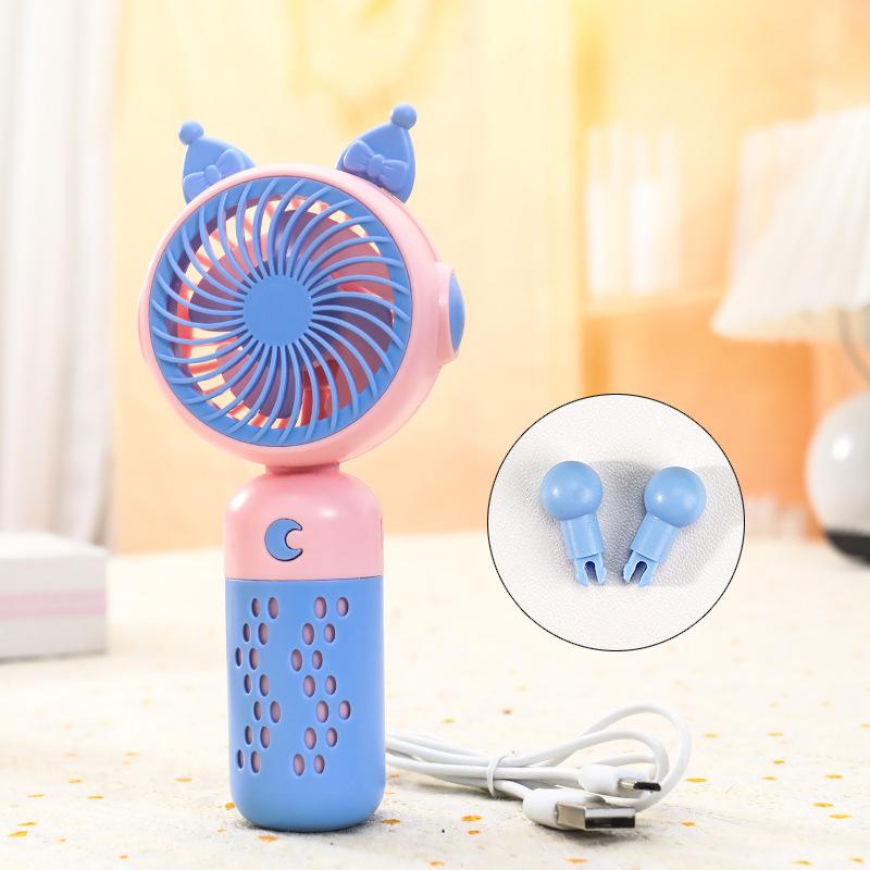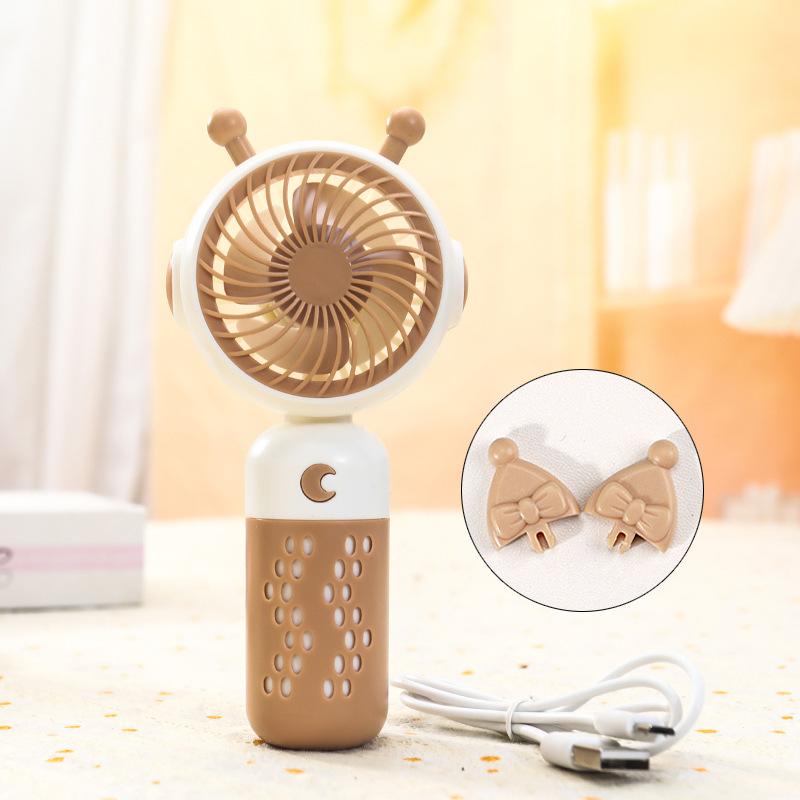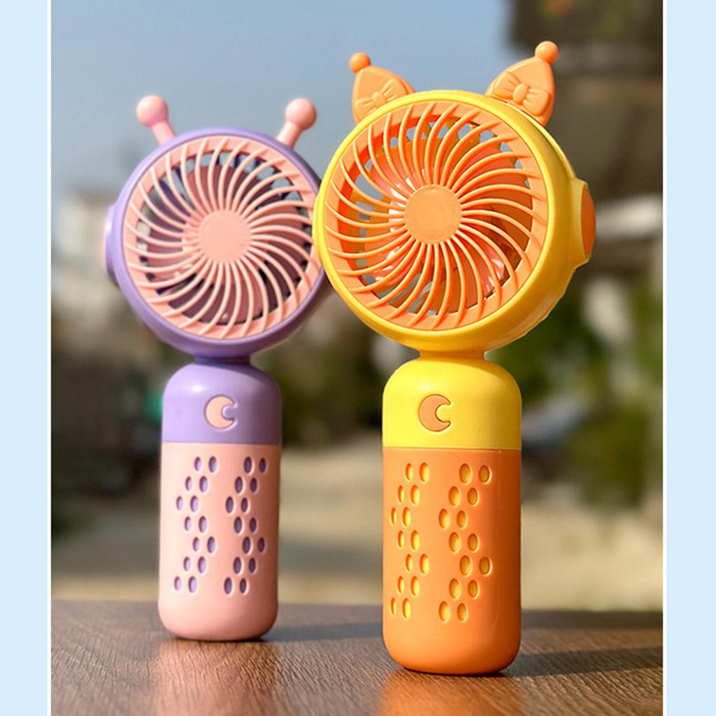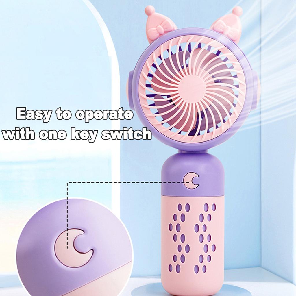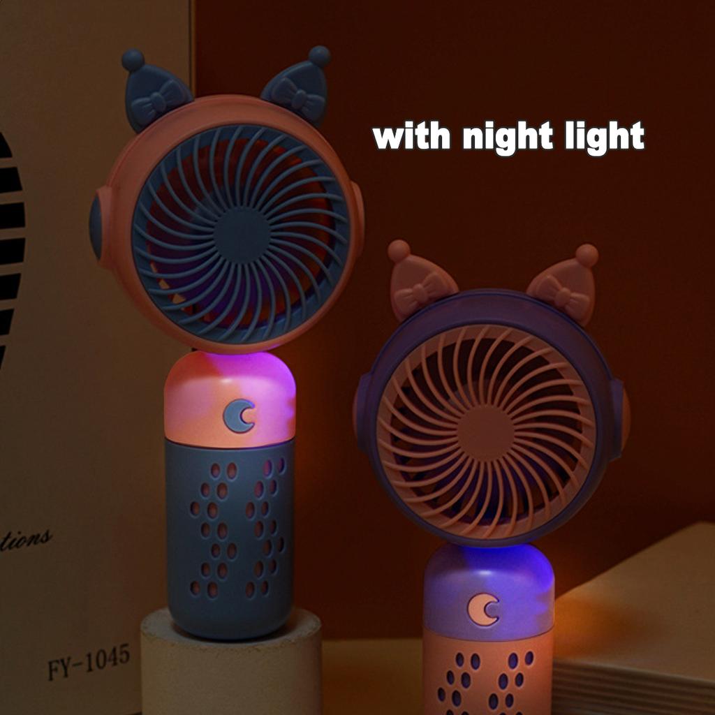 Мультяшный мини-ручной вентилятор с подсветкой, USB-зарядка, долговечный, портативный, дорожный, небольшой вращающийся вентилятор