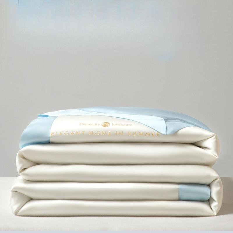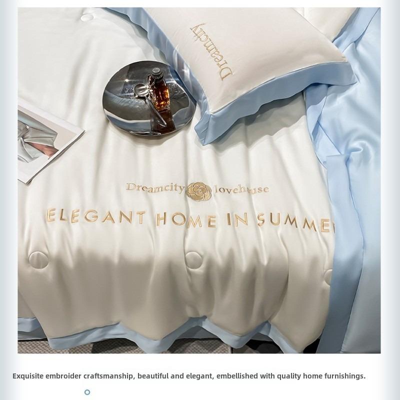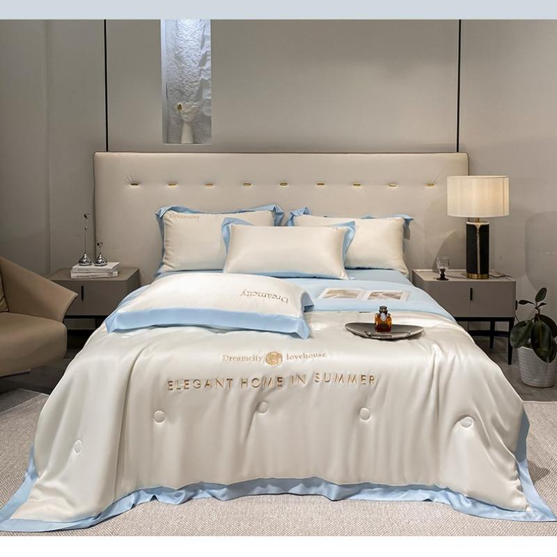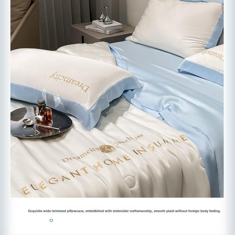 Комплект летнего одеяла из 4 предметов из вышитого ледяного шелка, подходит для спальни, квартиры, постельное белье для летнего комфорта, дышащий, прохладный