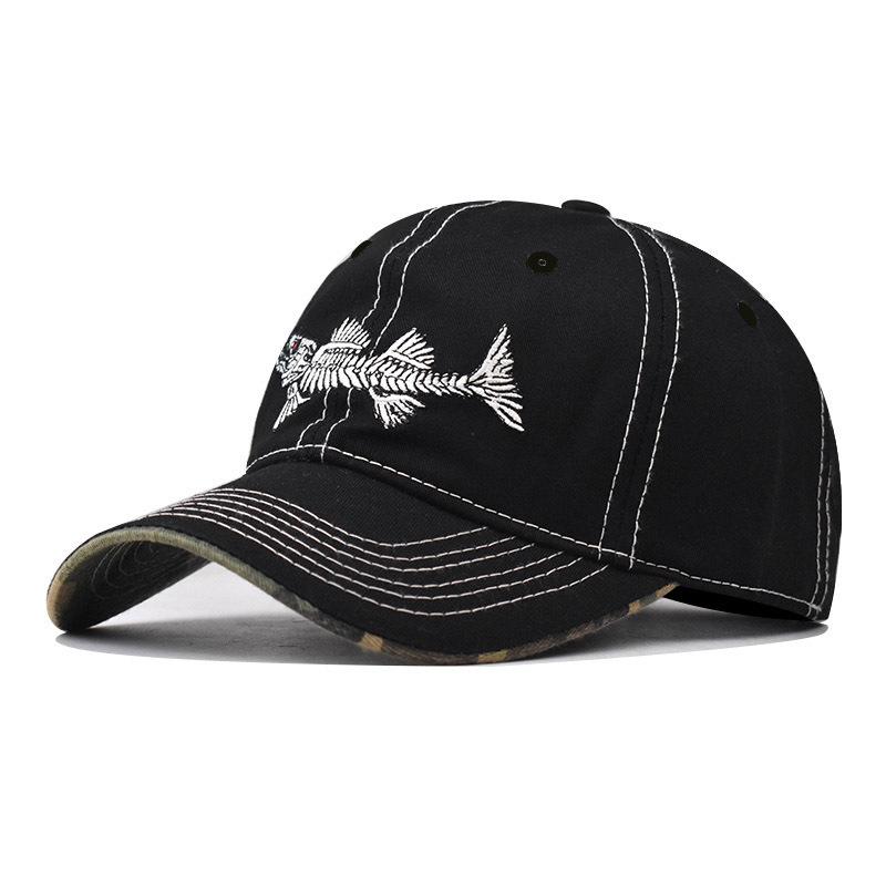 Бейсболка с вышивкой в виде рыбьей кости из хлопка, универсальная, для активного отдыха, с большой вышивкой, в виде рыбы