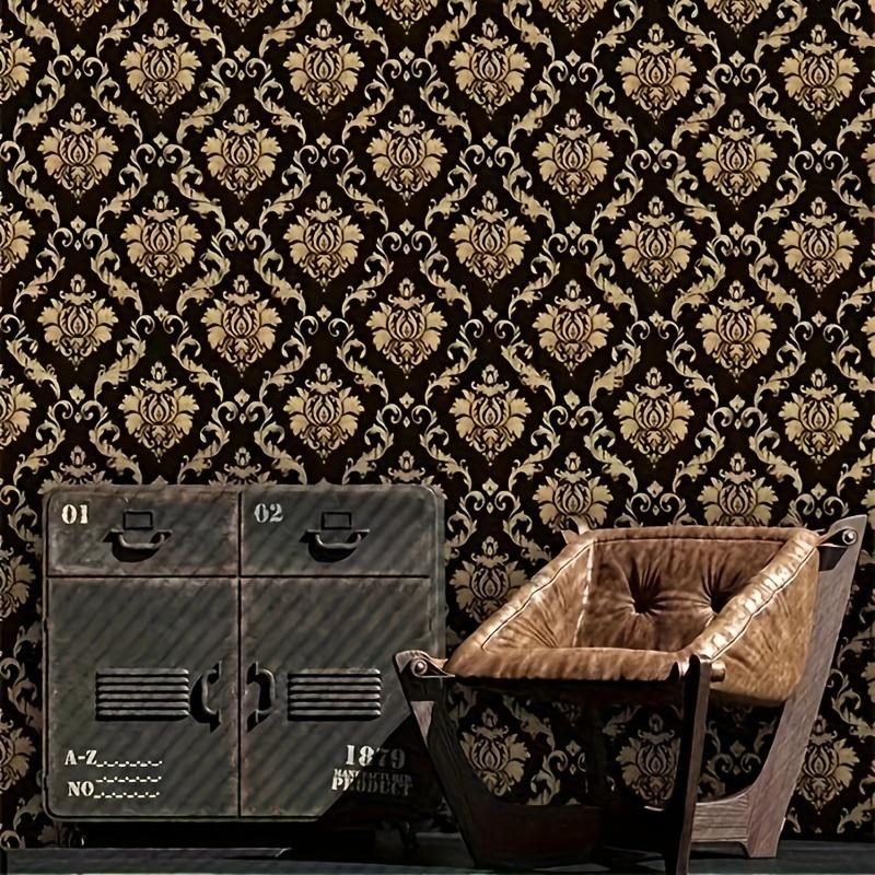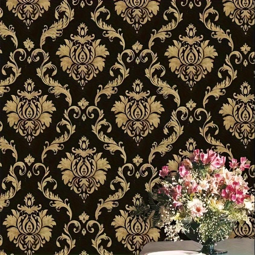 1 рулон высококачественных несамоклеящихся черно-золотистых текстурных обоев с тиснением - 3D металлизированный дамасский моющийся виниловый ПВХ для роскошного декора стен