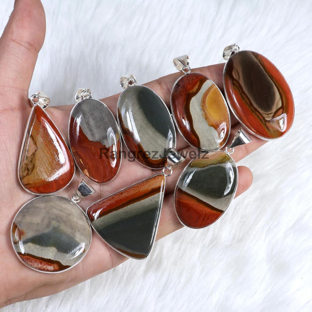 Polychrome Jasper Pendant Sterling Silver Pendant Bezel Pendant Natural Polychrome Pendant Necklace Mix Shape Polychrome Jasper Jewelry