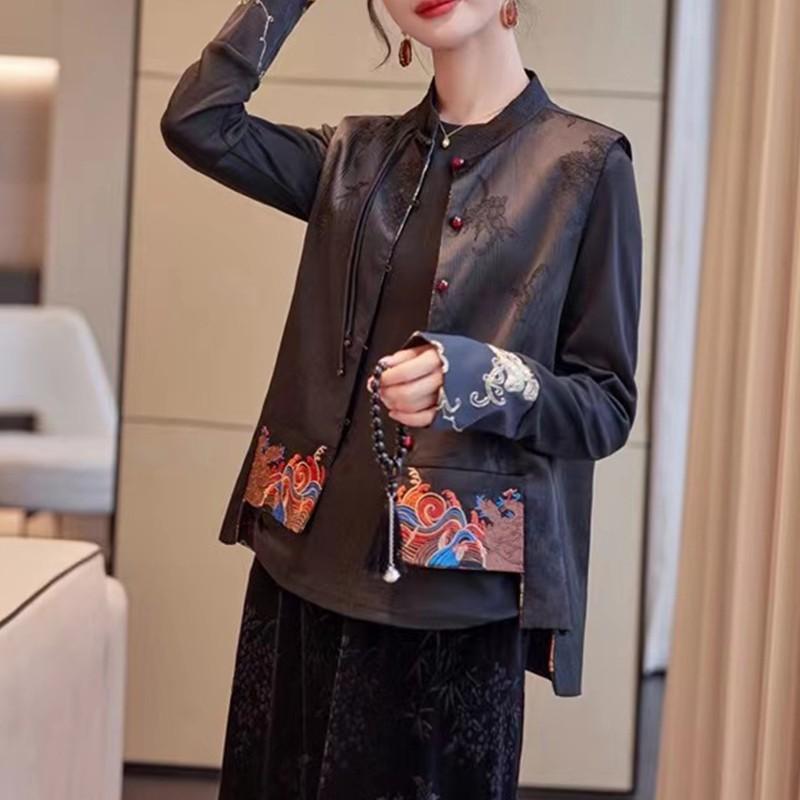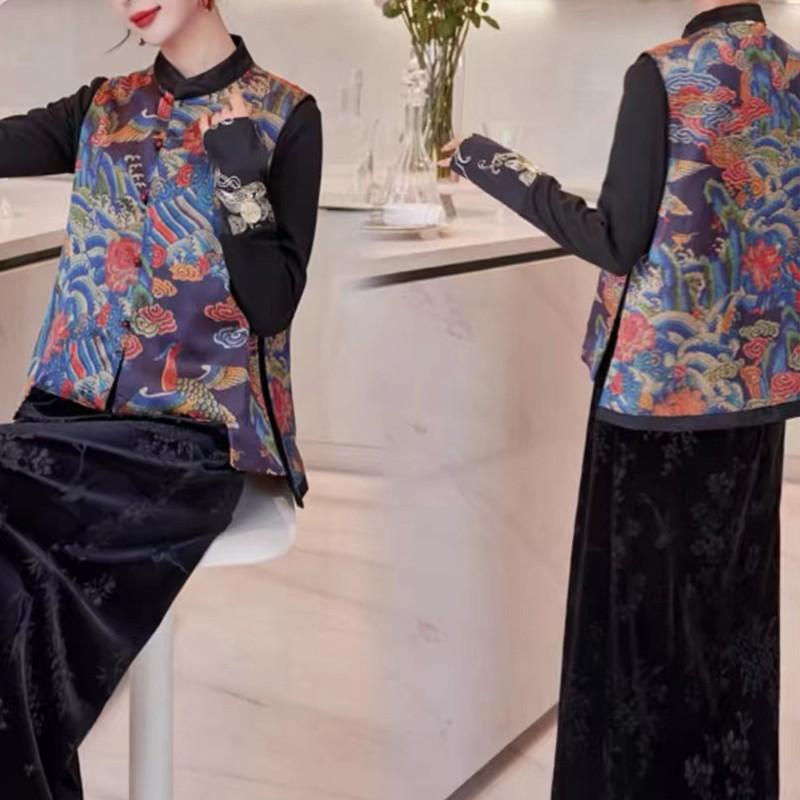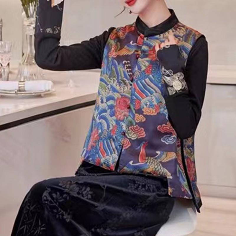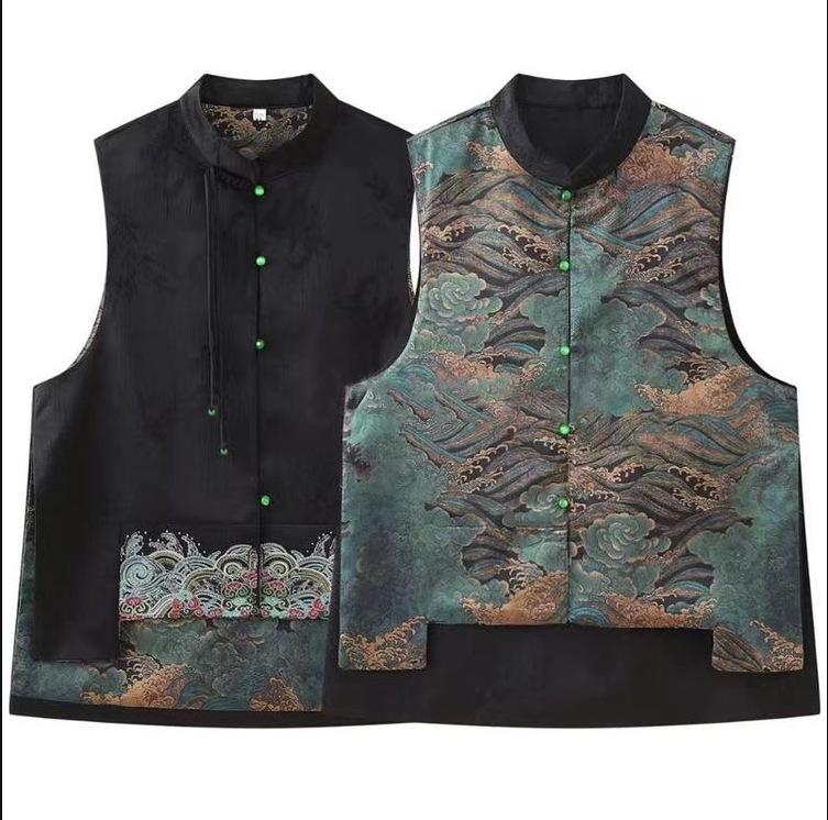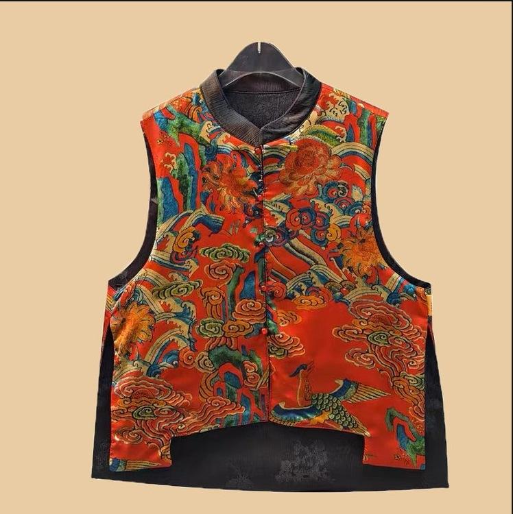 Весна и осень Ретро Китайский стиль Национальный стиль Вышивка Этнический стиль Печать Двусторонняя одежда Модный воротник-стойка Короткий жилет для женщин
