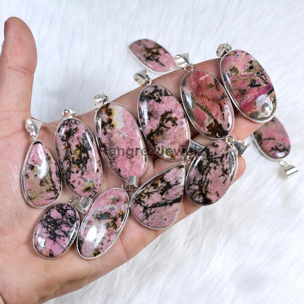 Pink Rhodonite Gemstone Pendant Natural Rhodonite Gemstone Pendant Necklace 925 Sterling Silver Bezel Pendant Jewelry — купить товар онлайн с бесплатной доставкой по всему миру!
