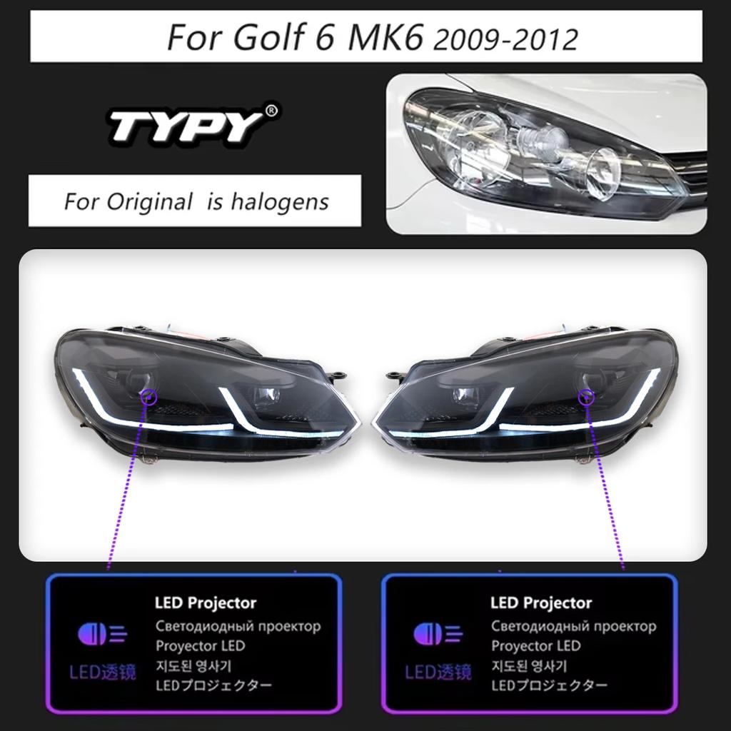TYPY Car Light For VW Golf 6 Headlamp Mk6 2009-2012 LED Projector Lens headlight DRL Turn Signal Lamps High Beam Lamps