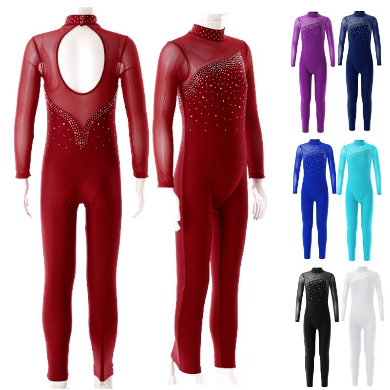 Детский модный купальник для девочек с длинными рукавами, круглым воротником и открытой спиной, комбинезон для катания на коньках — купить товар онлайн с бесплатной доставкой до всему миру!