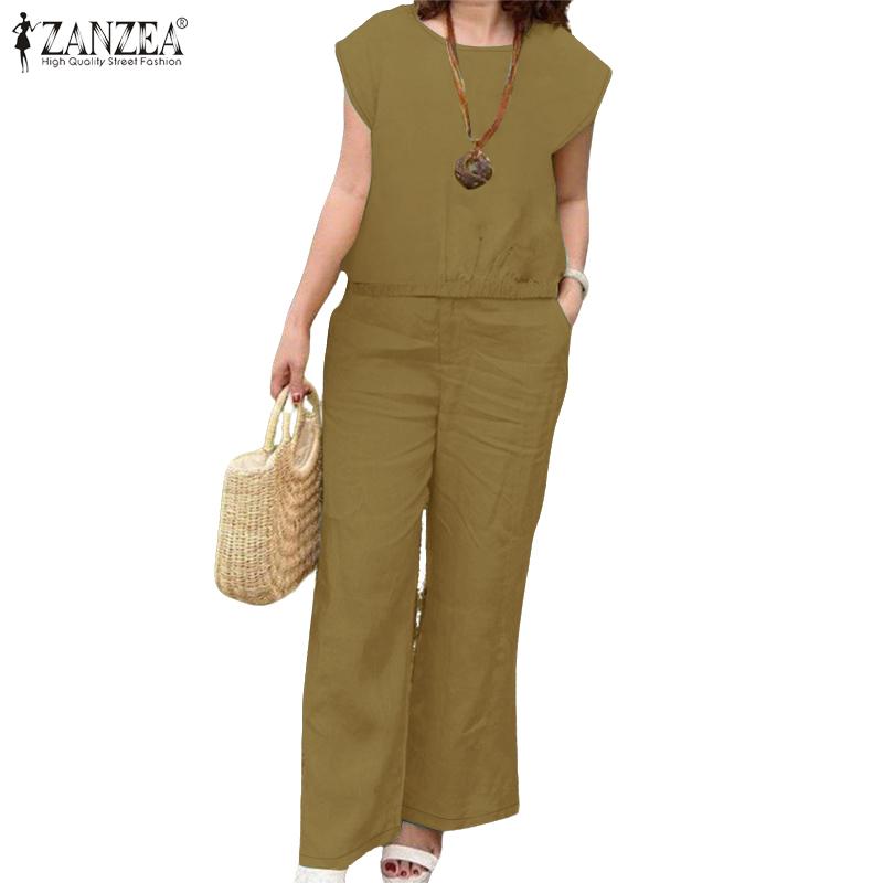 ZANZEA Женский летний комплект из двух частей: блузка с коротким рукавом и брюки — купить товар онлайн с бесплатной доставкой до всему миру!
