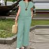 ZANZEA Женский летний комплект из двух частей: блузка с коротким рукавом и брюки