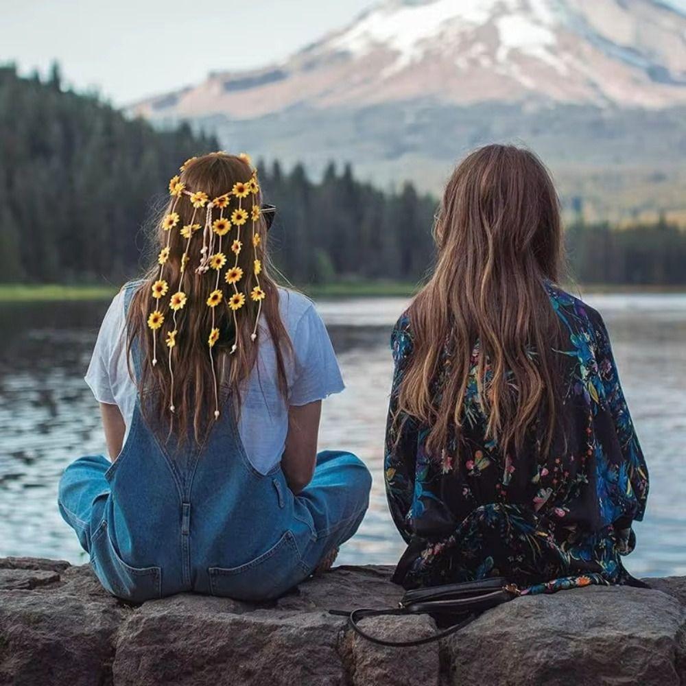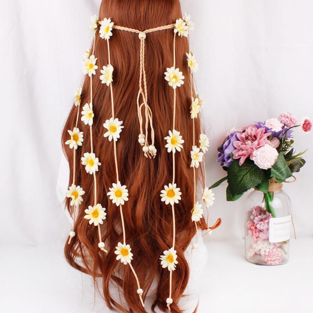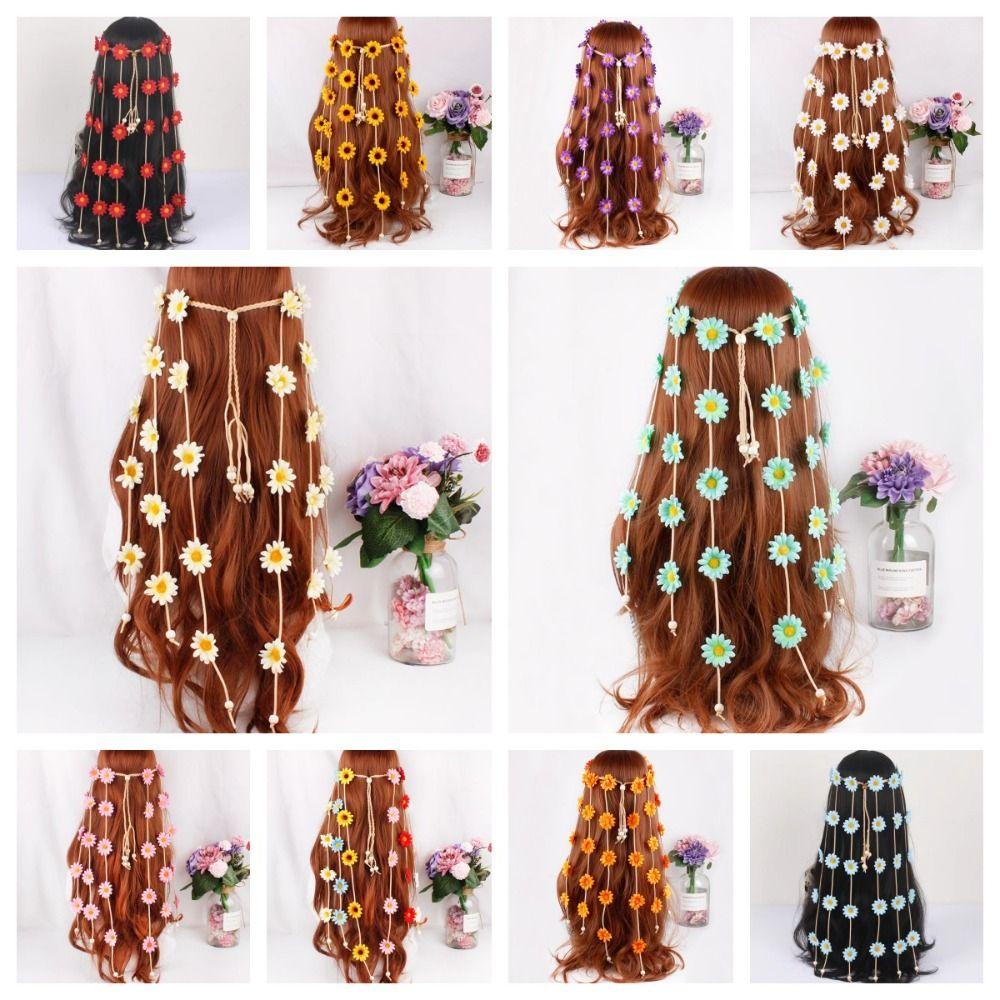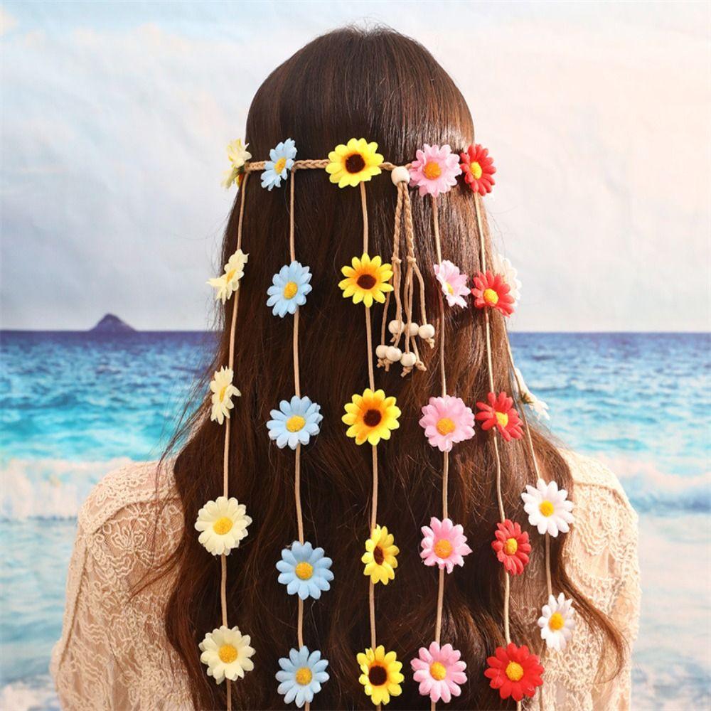 Корейский стиль Подсолнух ободок для волос Богемный цветок тиара роскошные длинные кисточки обруч для волос украшения