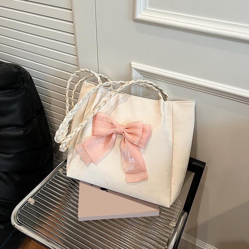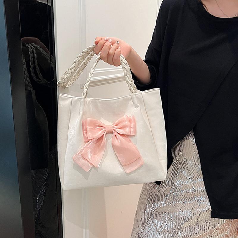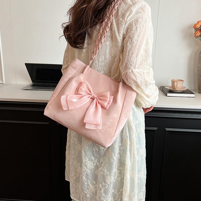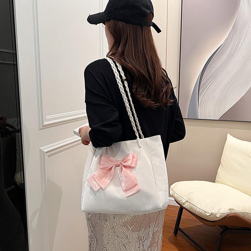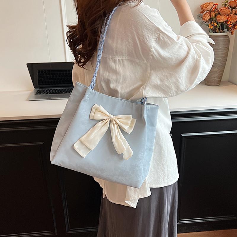 Yogodlns Летняя модная большая вместительная студенческая сумка через плечо с бантом, новая универсальная женская сумка-ведро для работы и путешествий