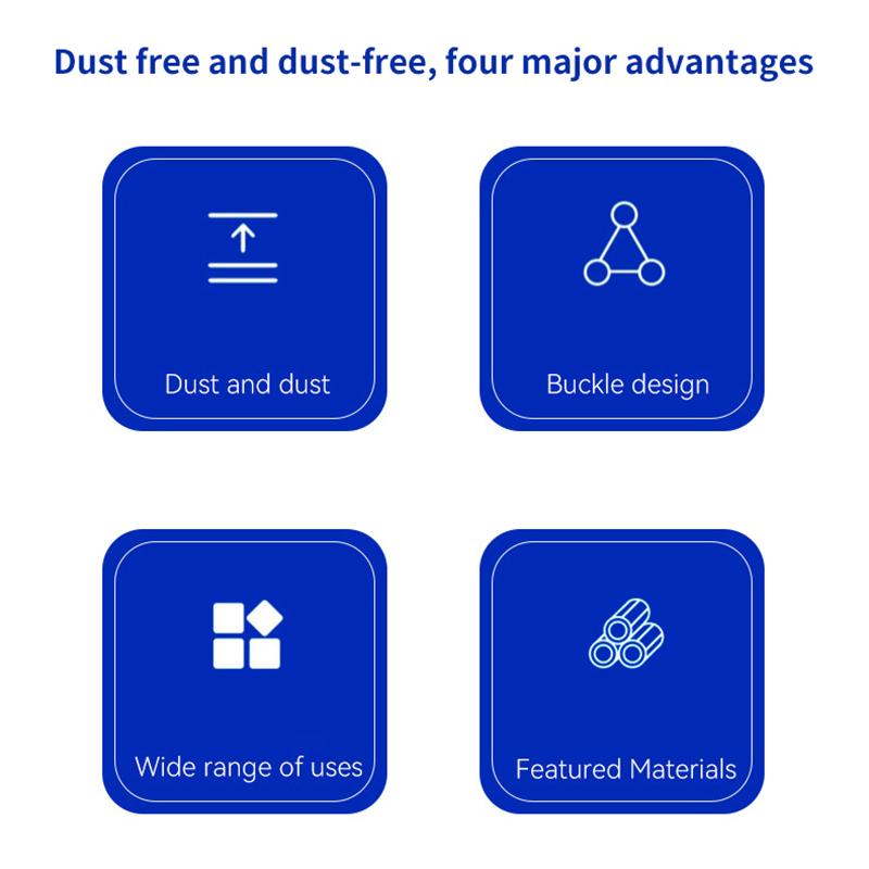 - Конструкция с герметичной пряжкой предотвращает утечку пыли.