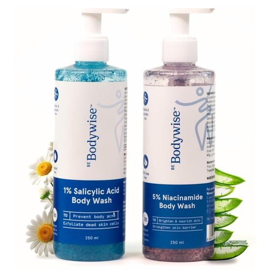 Гель для душа Be Bodywise с 5% ниацинамида и 1% салициловой кислоты | С алоэ вера и экстрактом ромашки | Для сияния и блеска | 500 мл