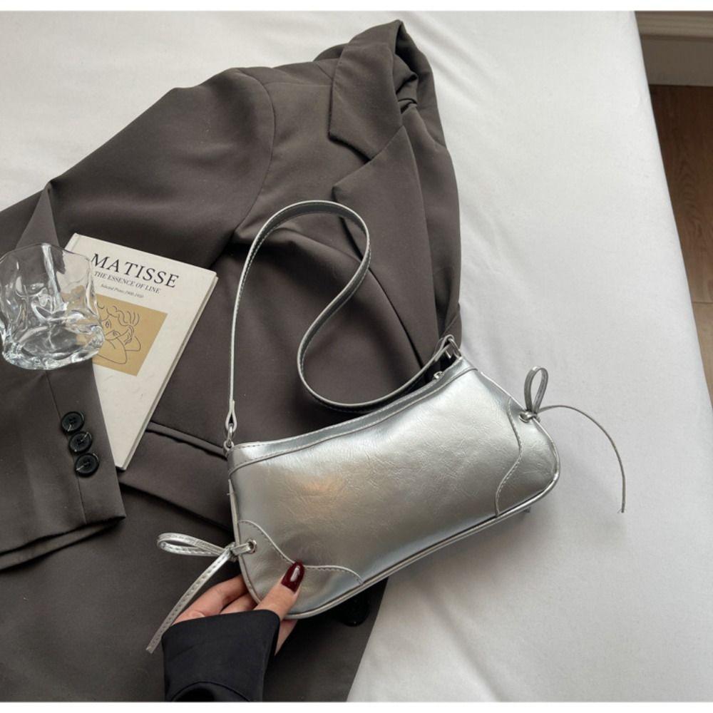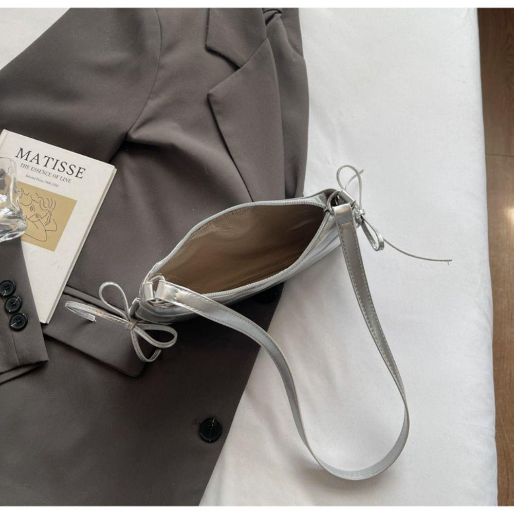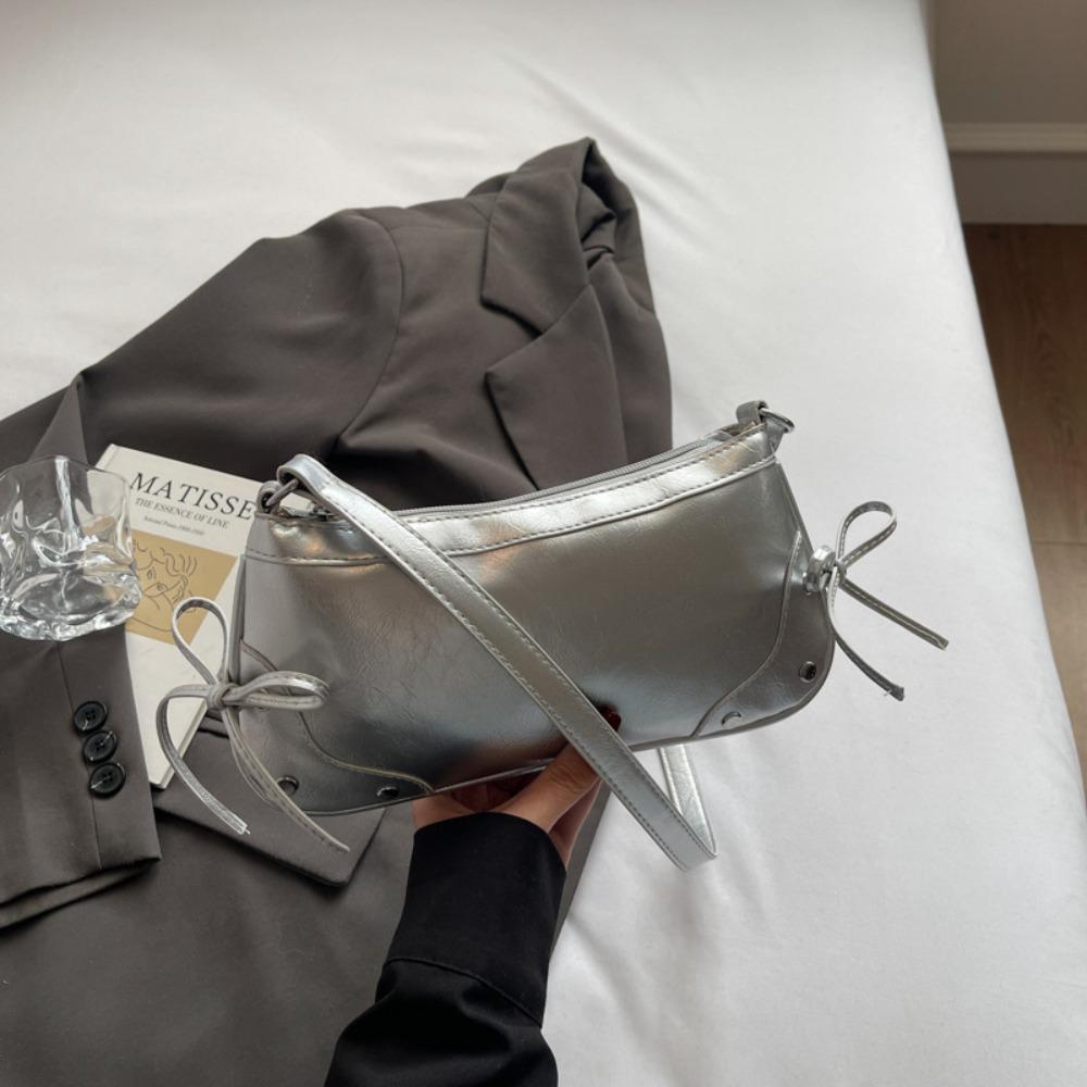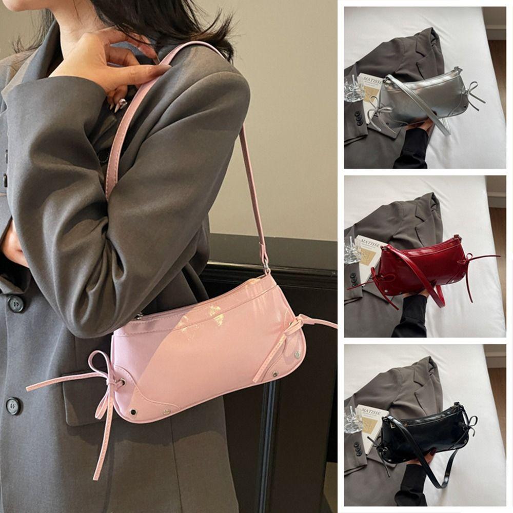 Solid Color Shoulder Bag Bow Tie Women Handbag Fashion Armpit Bag Girls