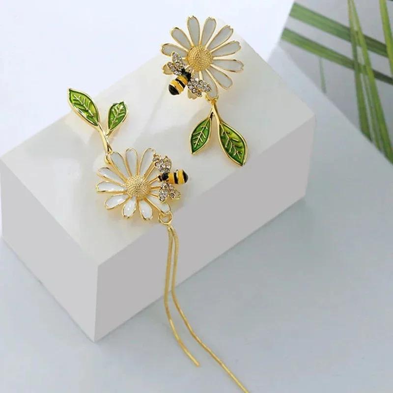 Серьги-кисточки в виде ромашки, темперамент, длинные, свисающие, новый дизайн, маленькая пчелка, собирающая цветы, медовые женские серьги, новые асимметричные