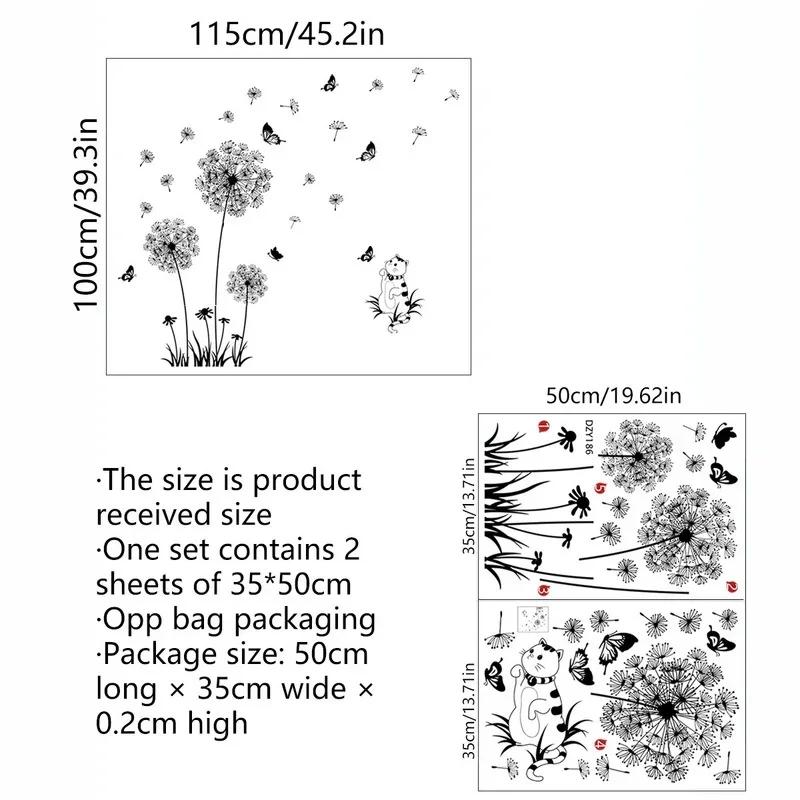 Милый кот черный одуванчик наклейка на стену бабочка стена гостиная спальня украшение окна роспись художественные наклейки домашний декор наклейки